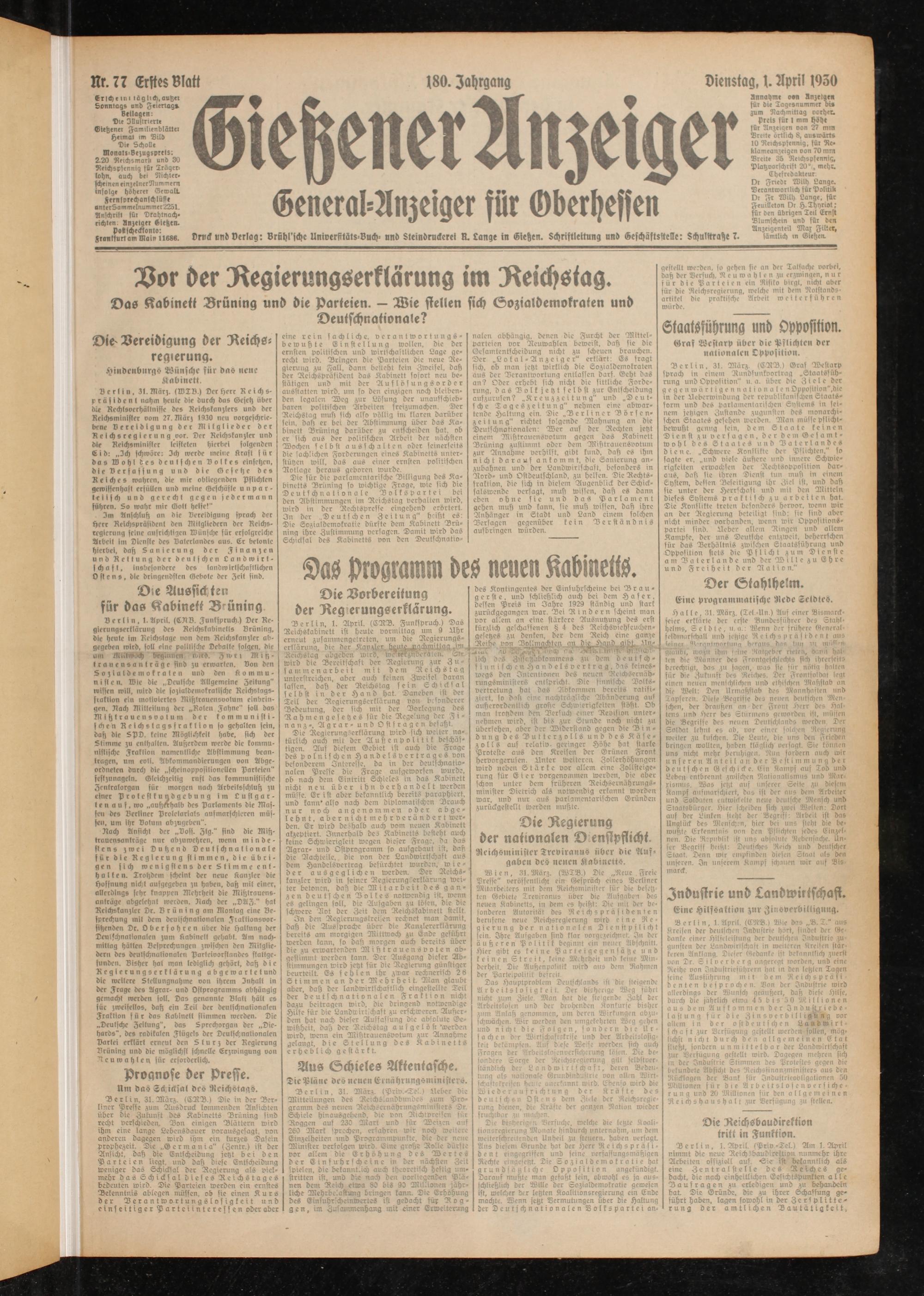 Gießener Anzeiger. 1868-1943