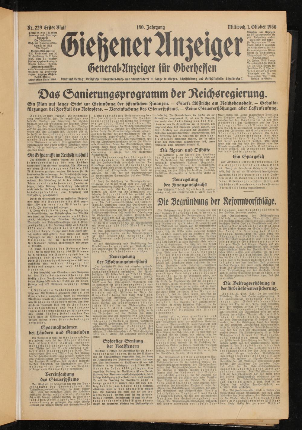 Gießener Anzeiger. 1868-1943