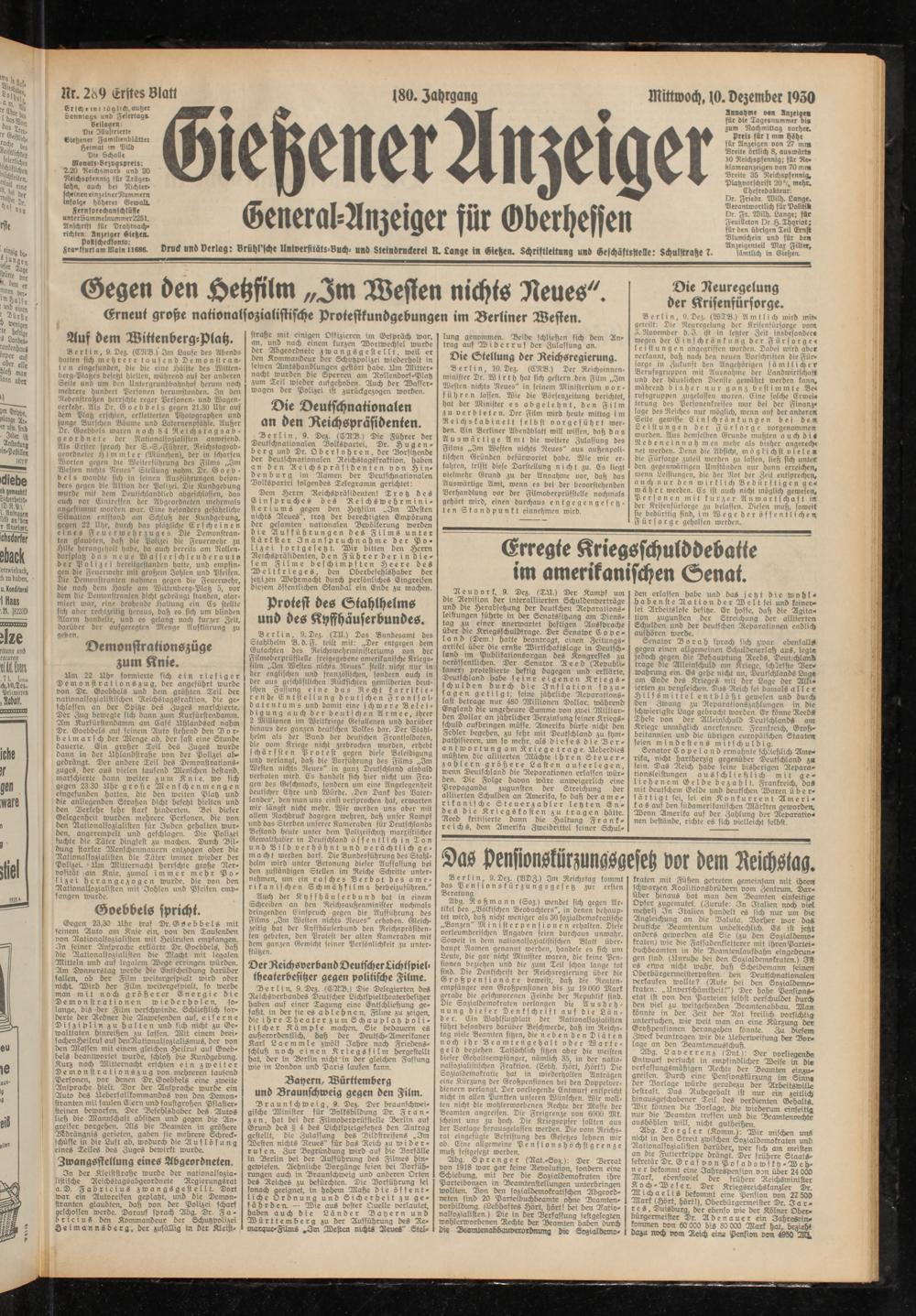 Gießener Anzeiger. 1868-1943