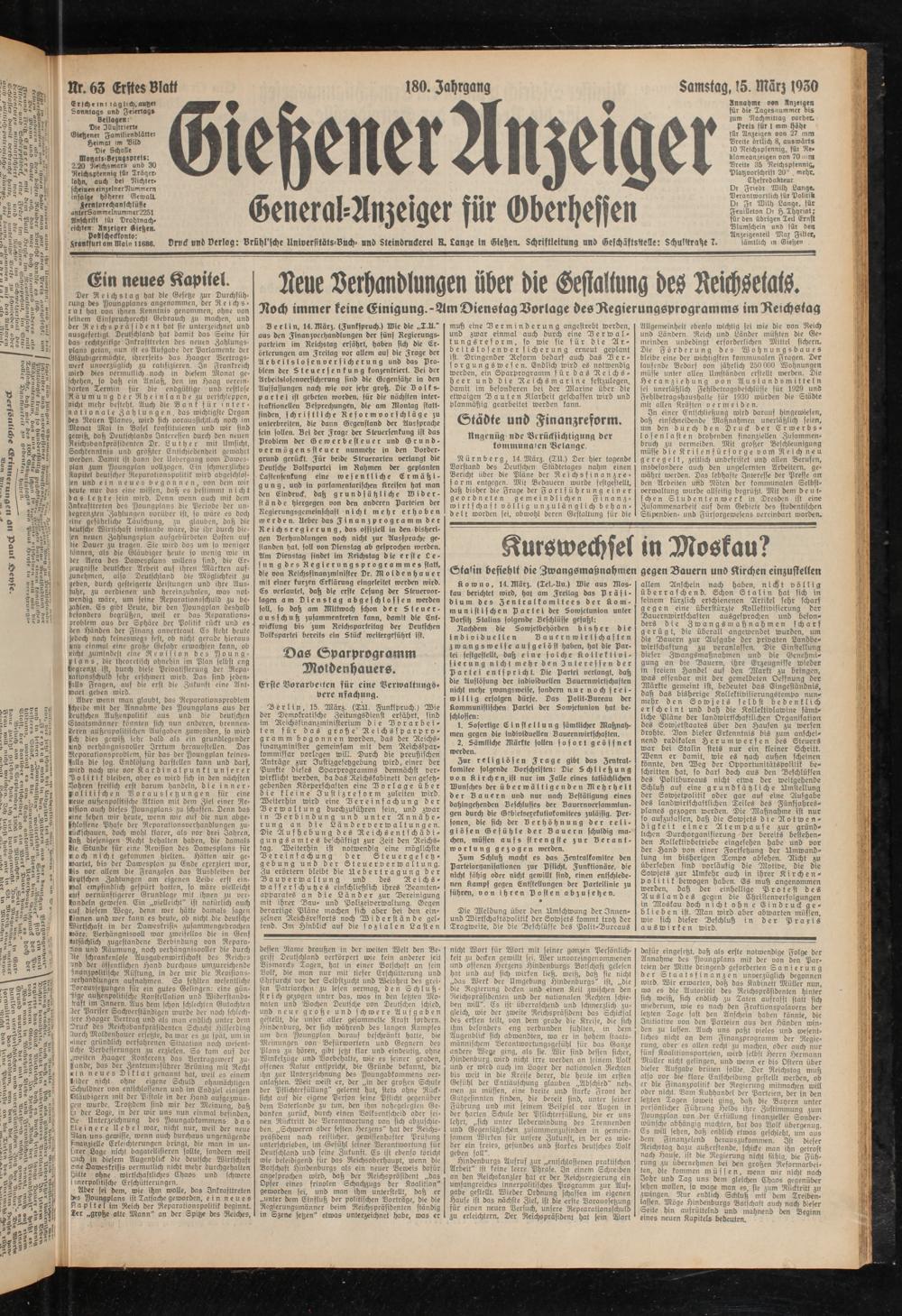 Gießener Anzeiger. 1868-1943