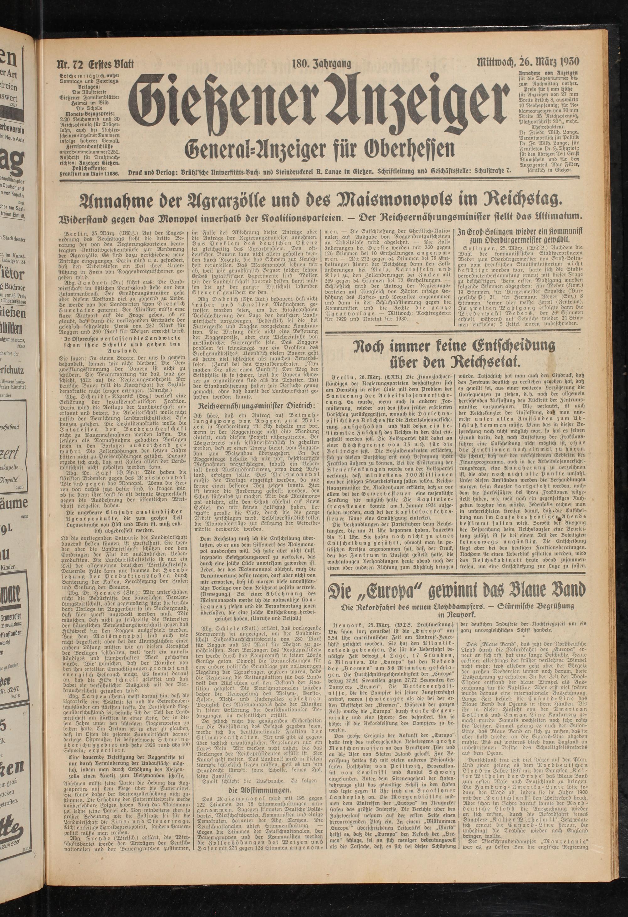 Gießener Anzeiger. 1868-1943