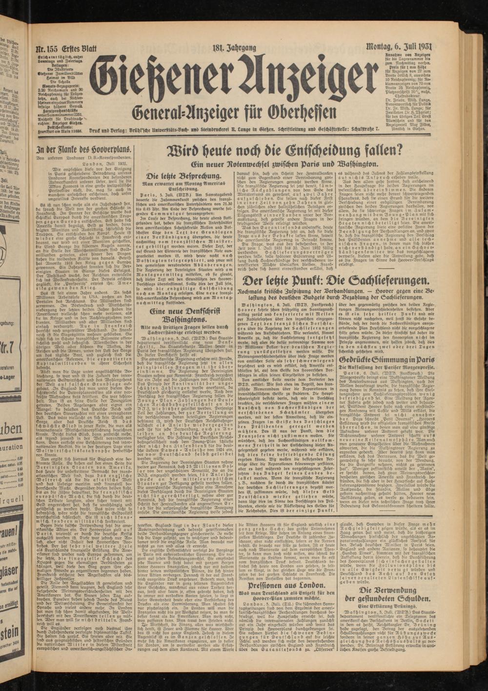 Gießener Anzeiger. 1868-1943