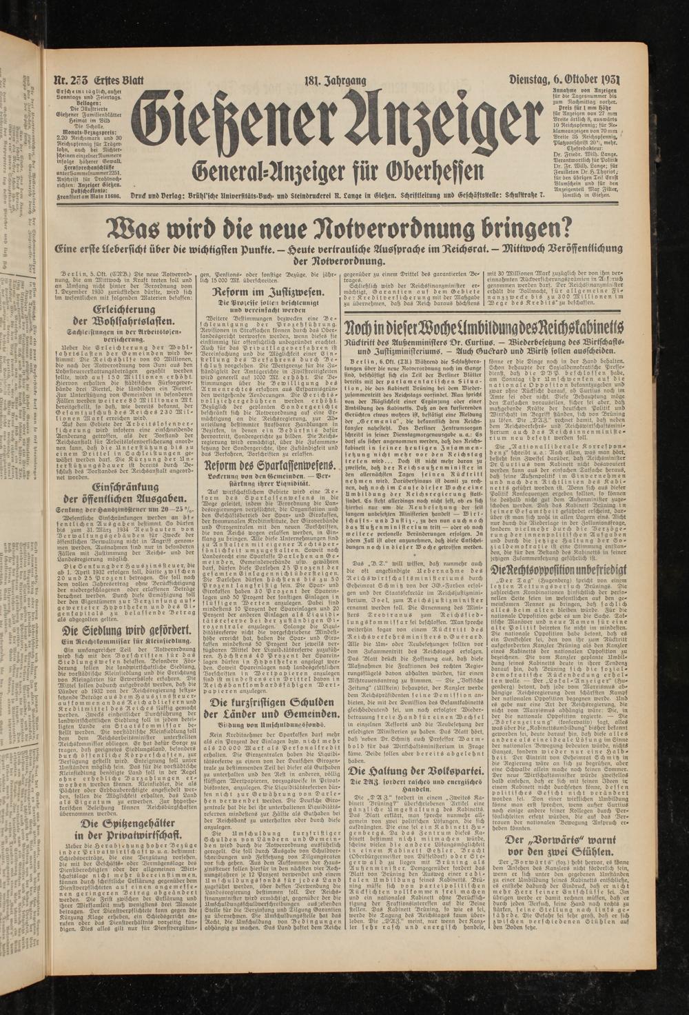 Gießener Anzeiger. 1868-1943