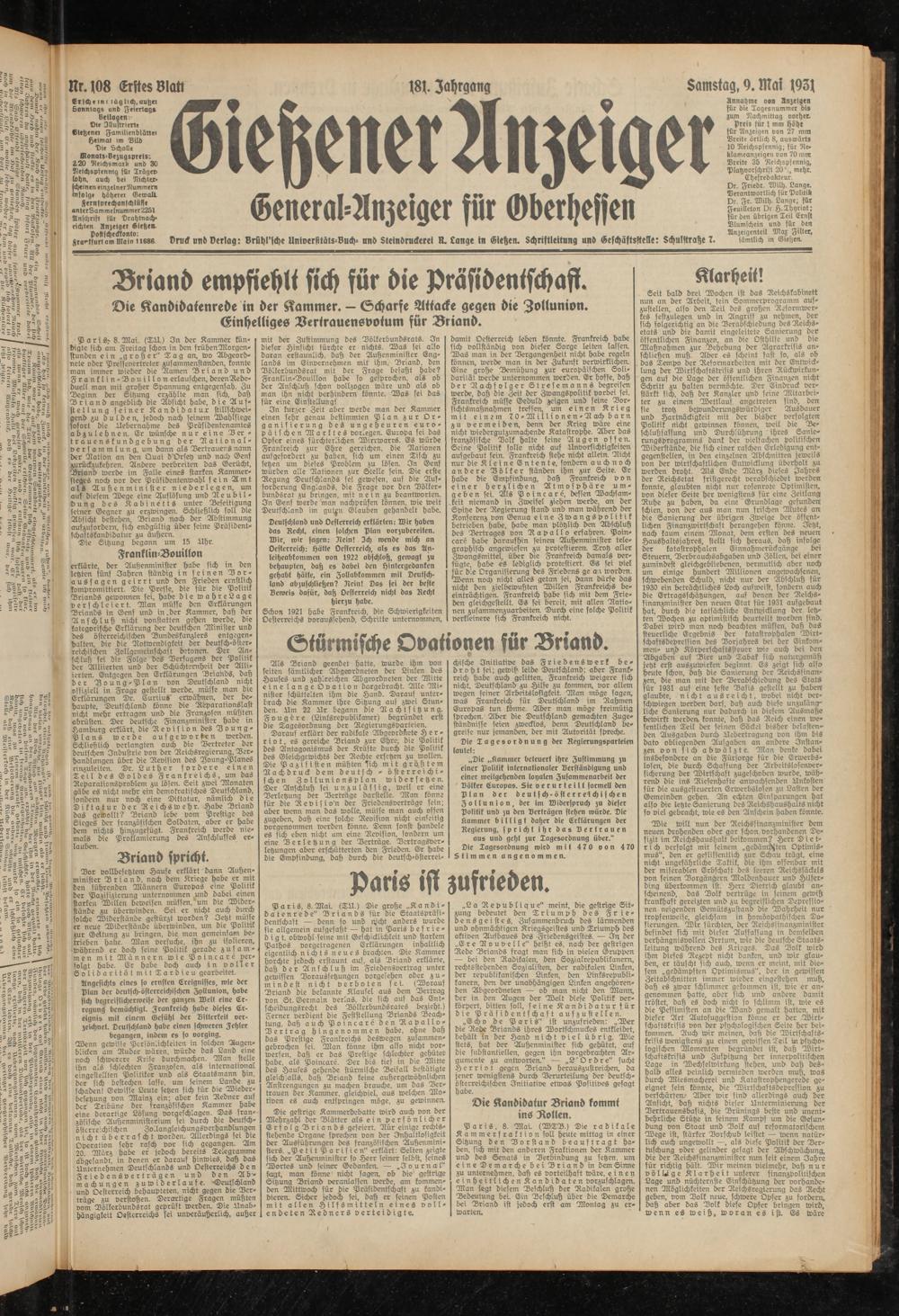 Gießener Anzeiger. 1868-1943