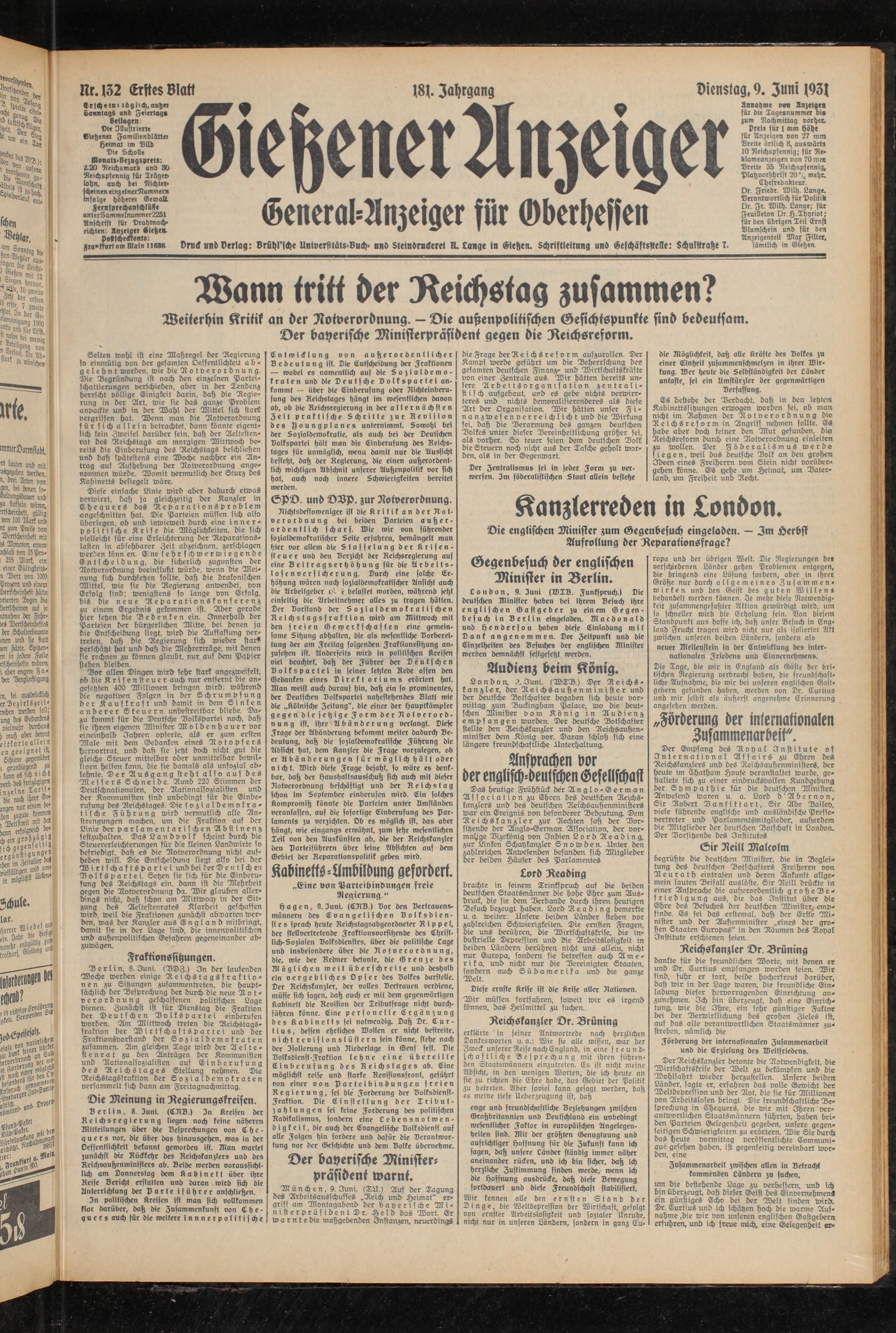 Gießener Anzeiger. 1868-1943