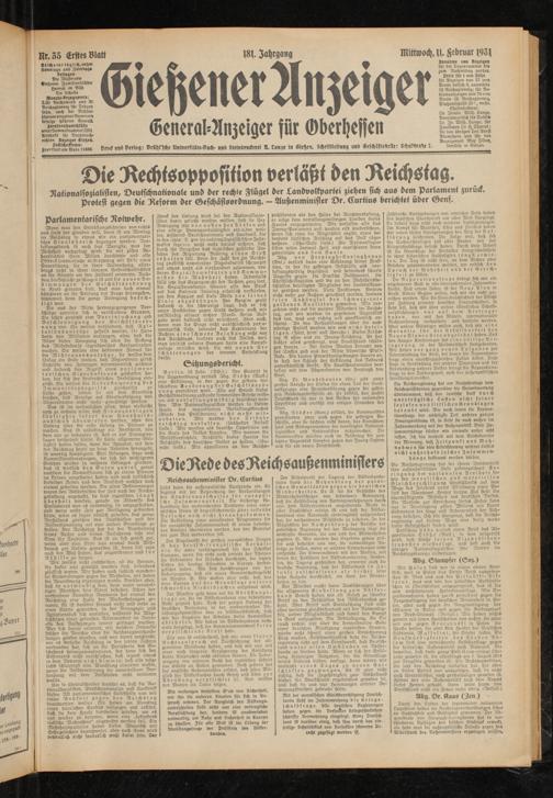 Gießener Anzeiger. 1868-1943