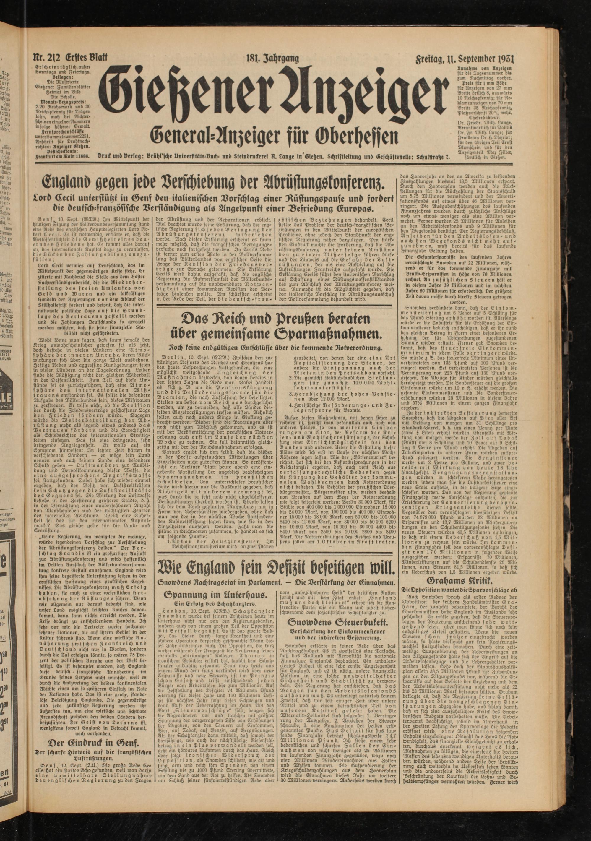 Gießener Anzeiger. 1868-1943