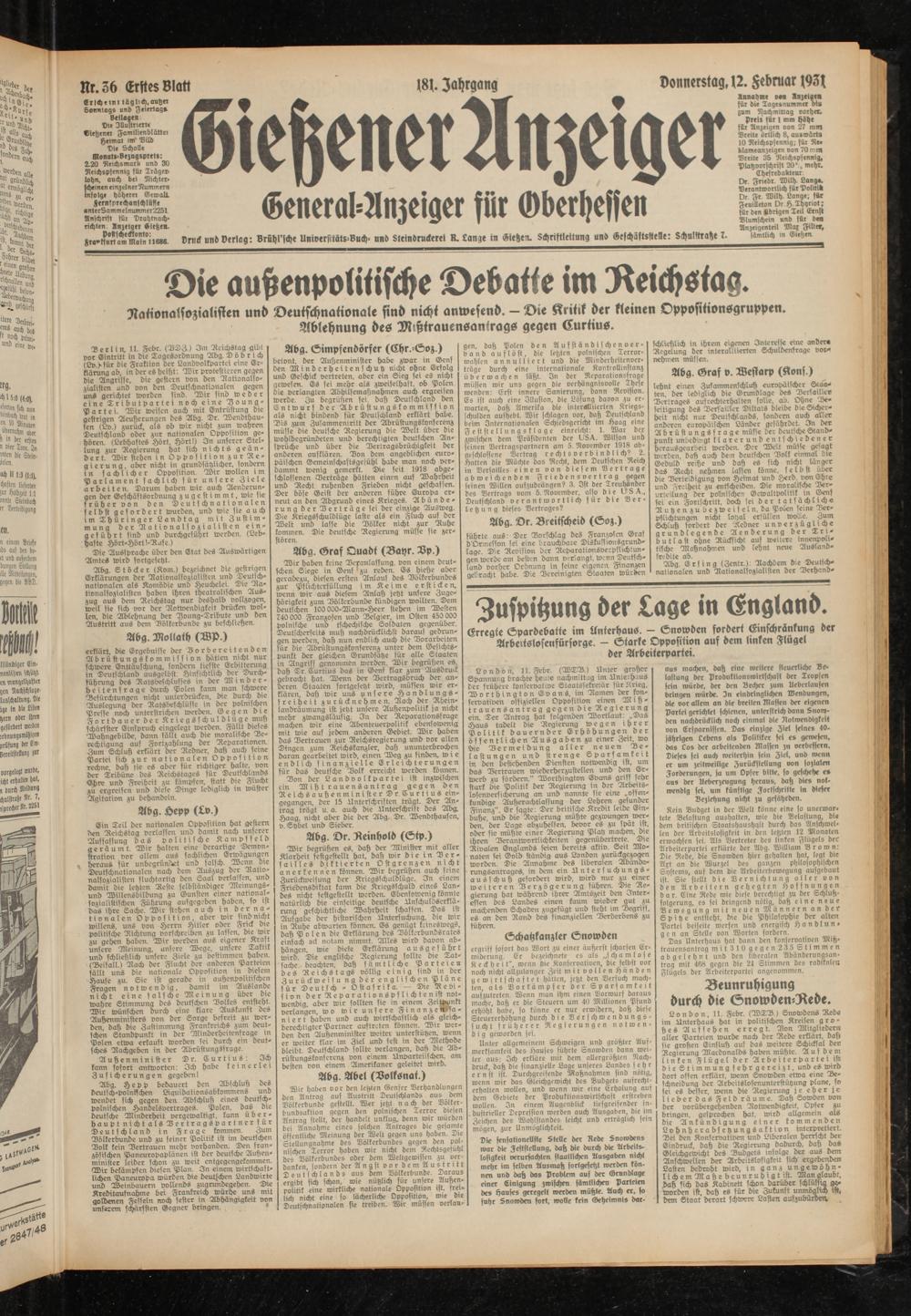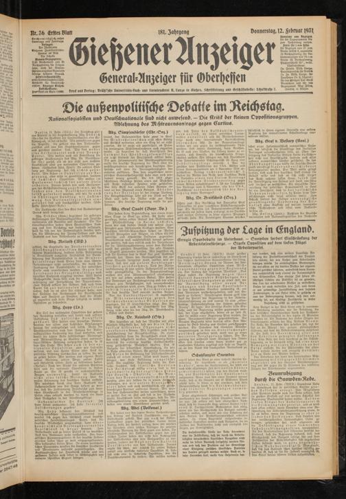 Gießener Anzeiger. 1868-1943