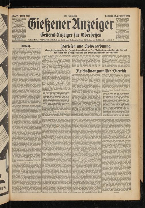 Gießener Anzeiger. 1868-1943