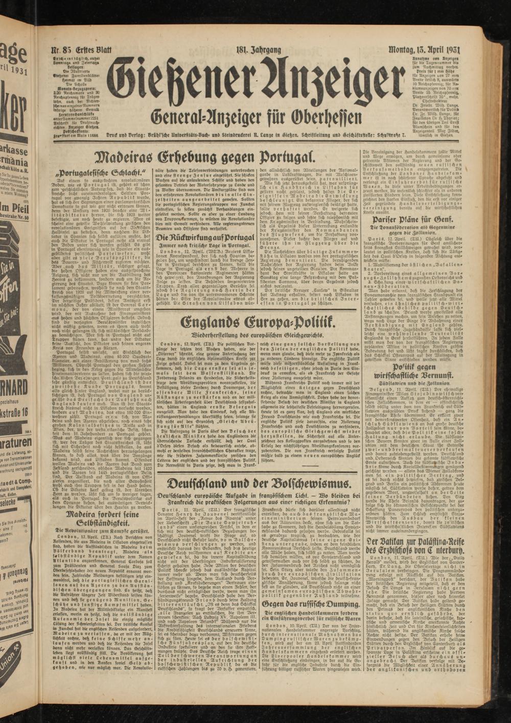 Gießener Anzeiger. 1868-1943