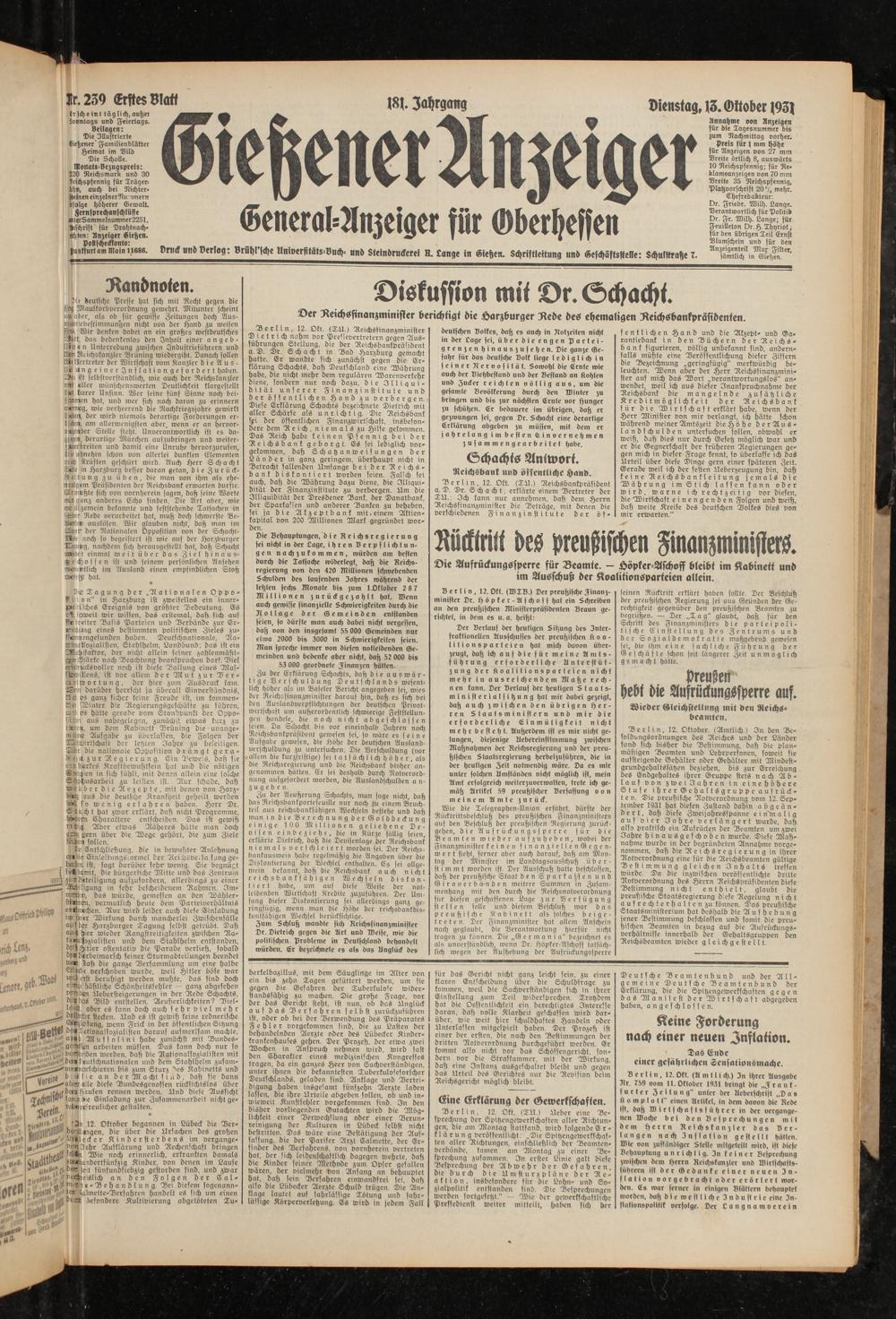 Gießener Anzeiger. 1868-1943