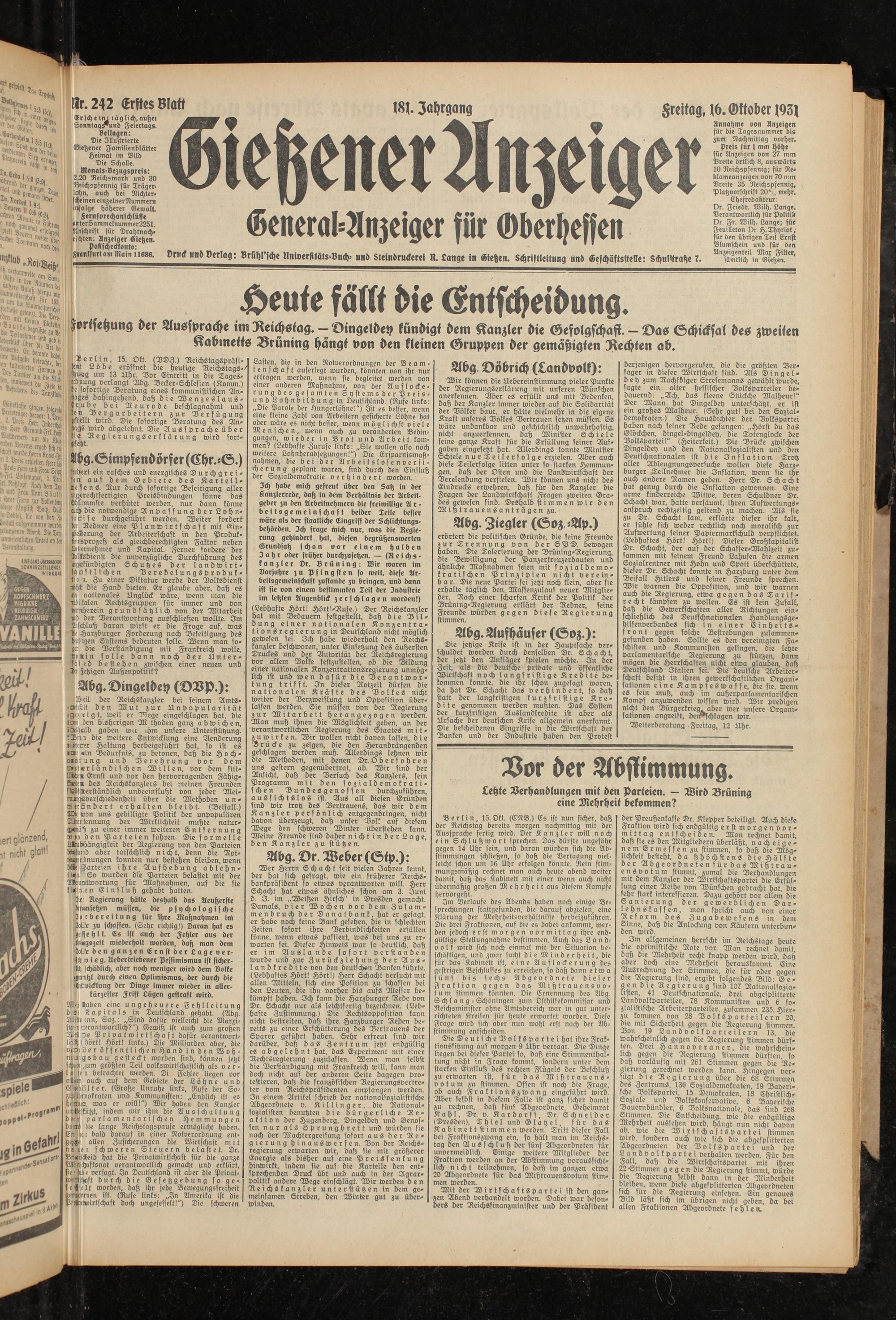 Gießener Anzeiger. 1868-1943