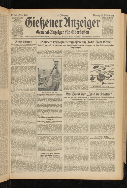 Gießener Anzeiger. 1868-1943