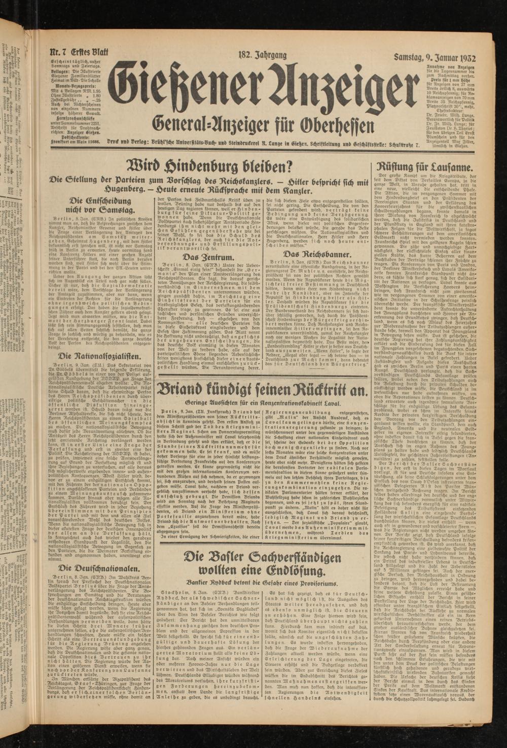 Gießener Anzeiger. 1868-1943