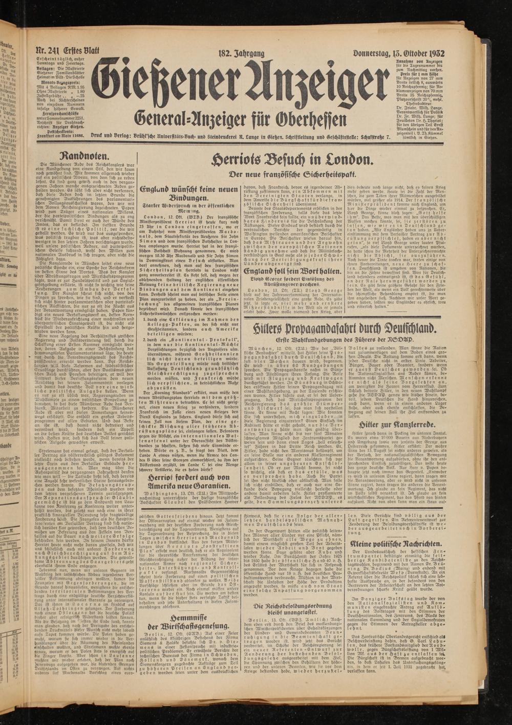 13.10.1932 Erstes Blatt