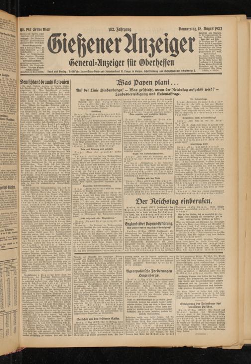 18.8.1932 Erstes Blatt