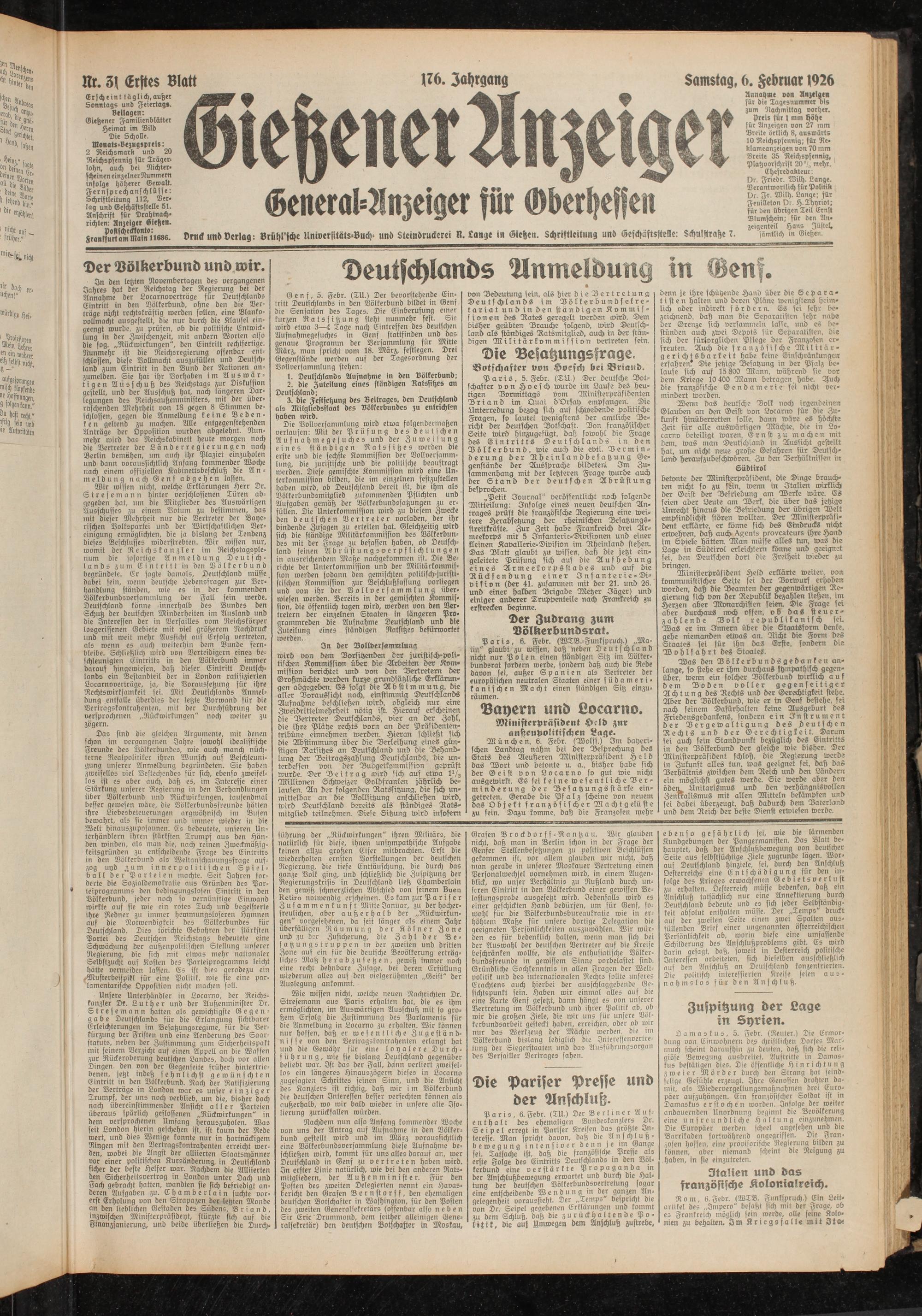 Gießener Anzeiger. 1868-1943