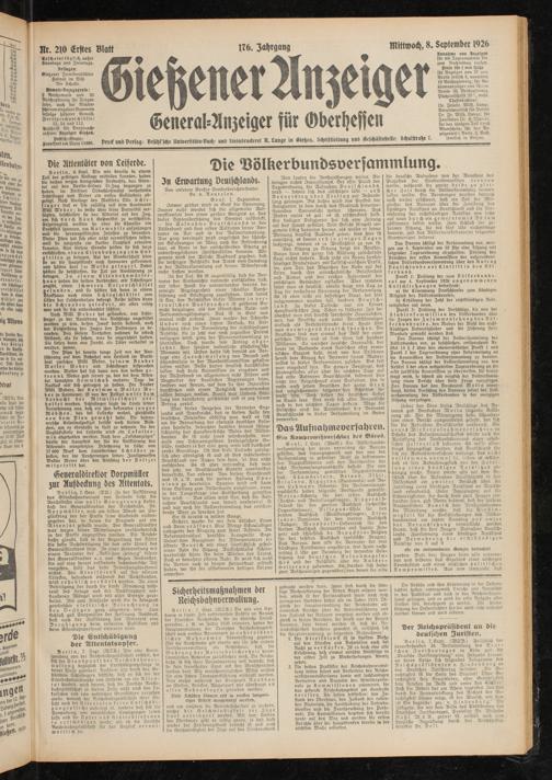 Gießener Anzeiger. 1868-1943