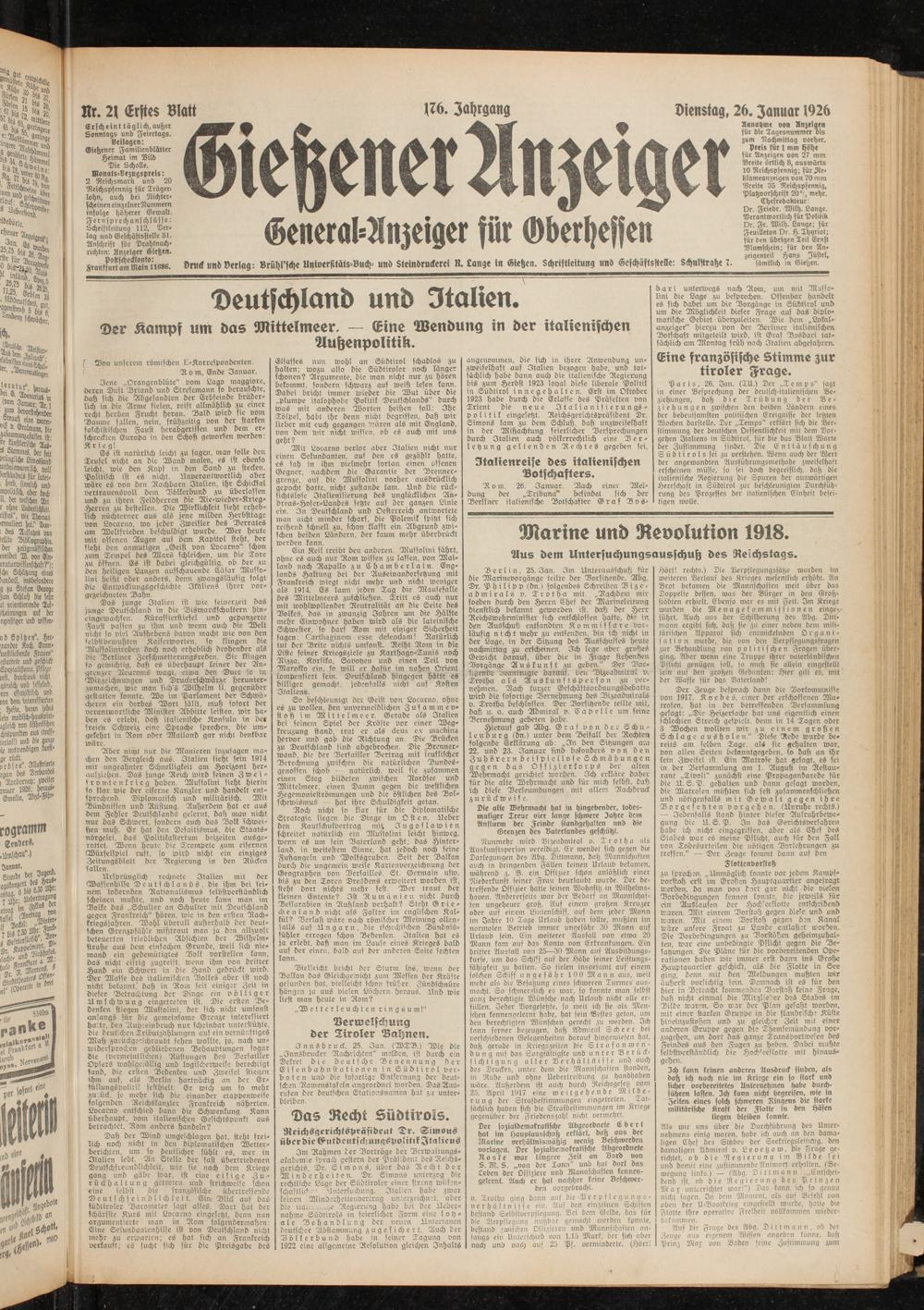 Gießener Anzeiger. 1868-1943