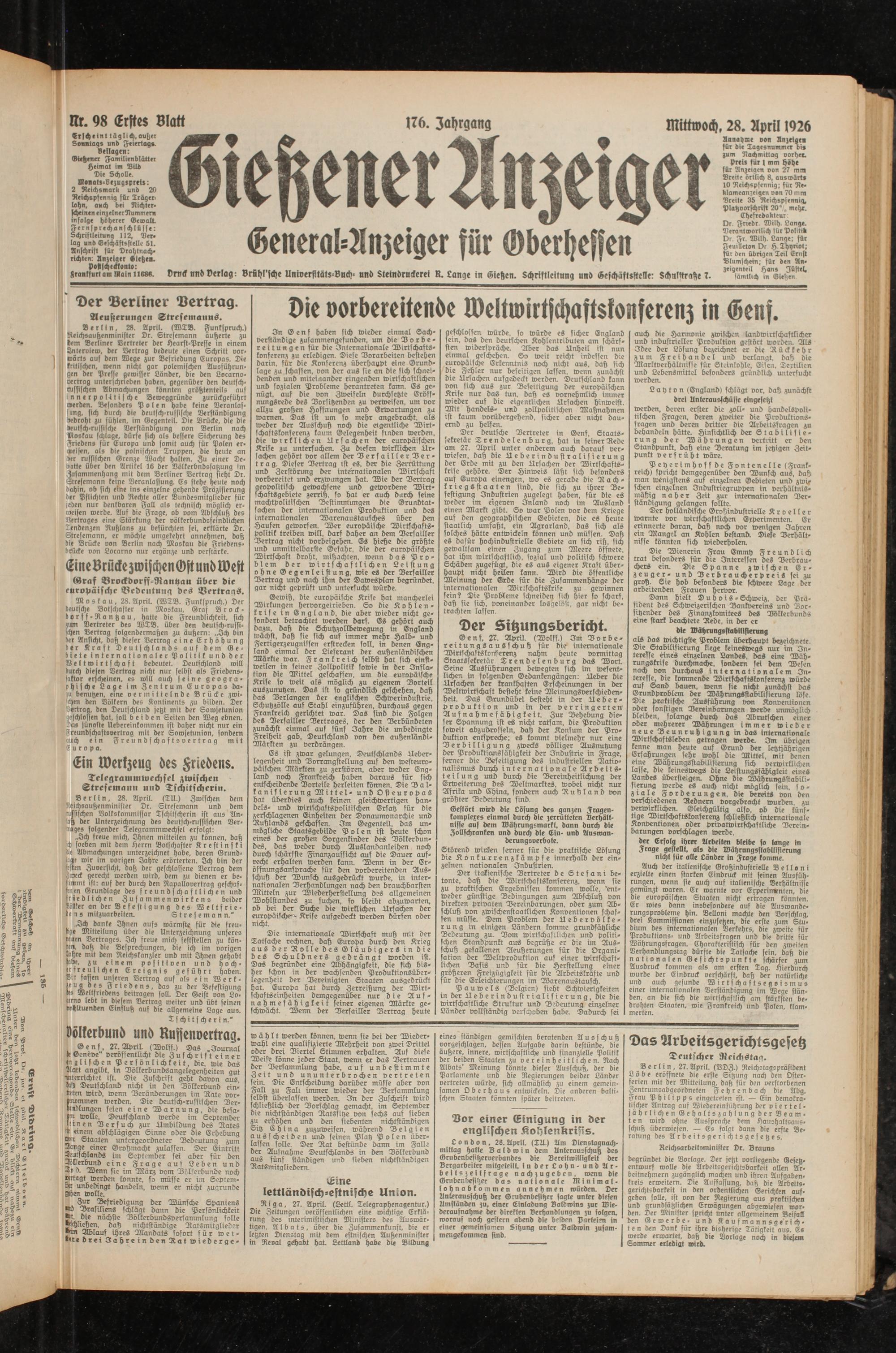 Gießener Anzeiger. 1868-1943