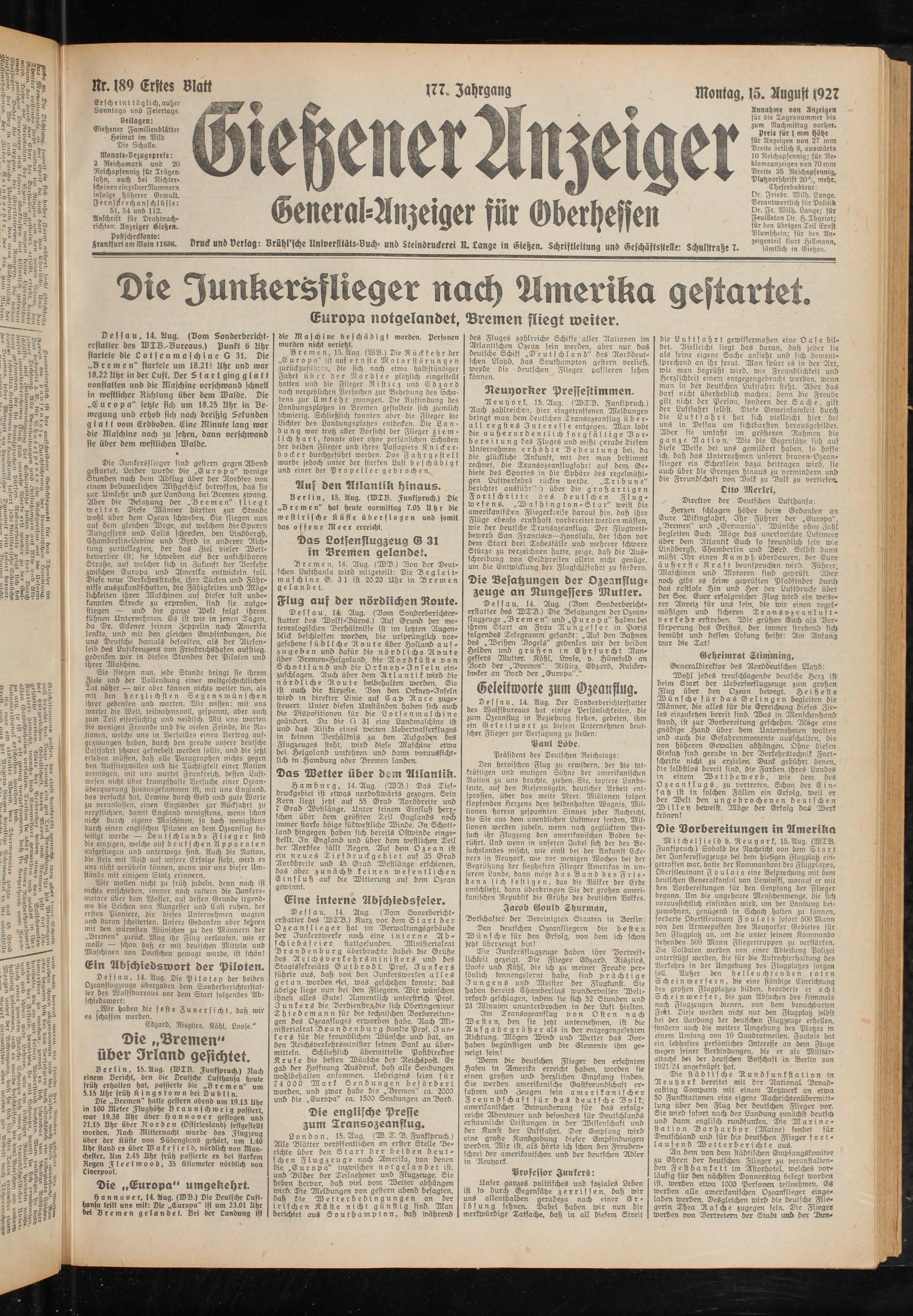 Gießener Anzeiger. 1868-1943