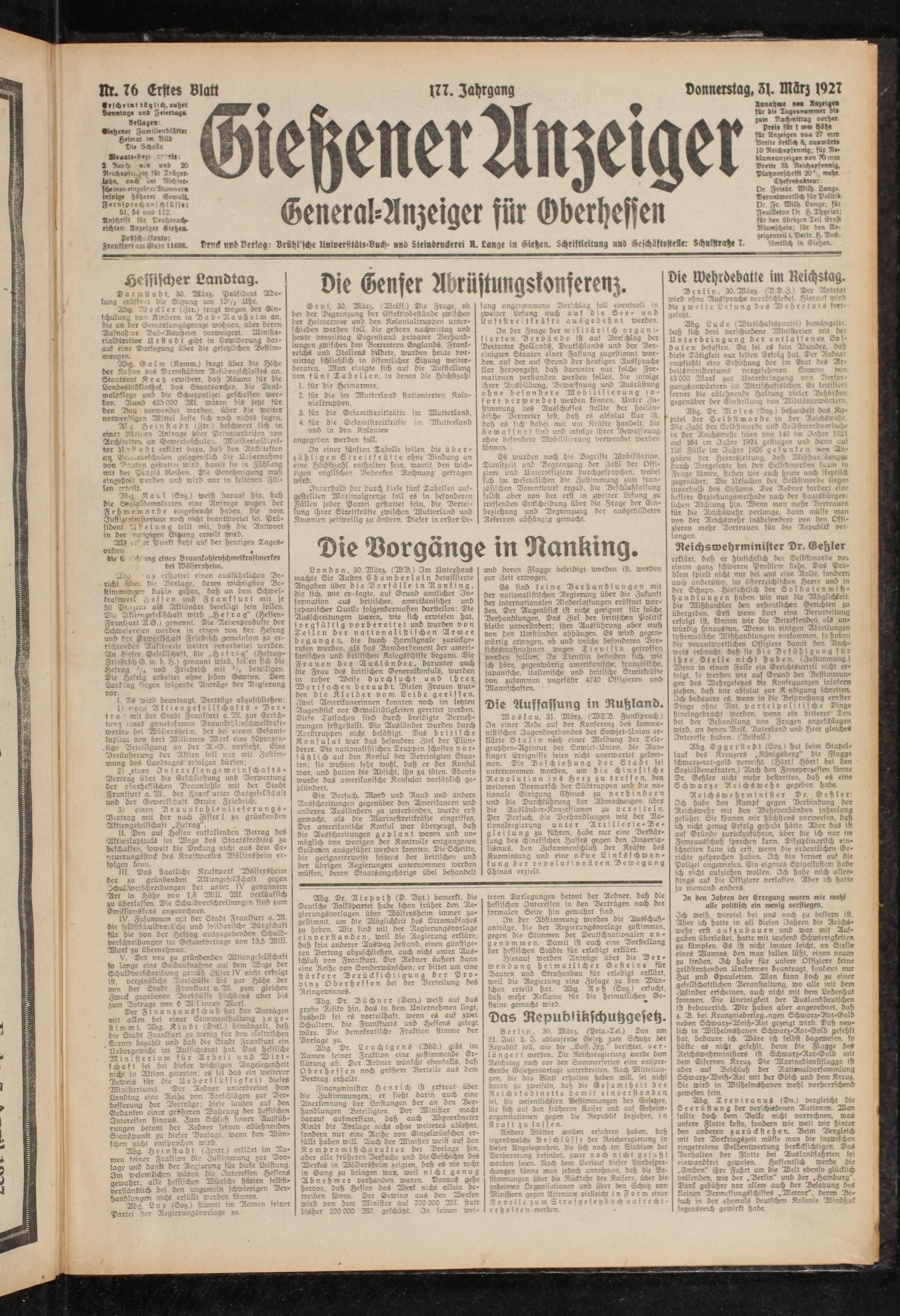 Gießener Anzeiger. 1868-1943