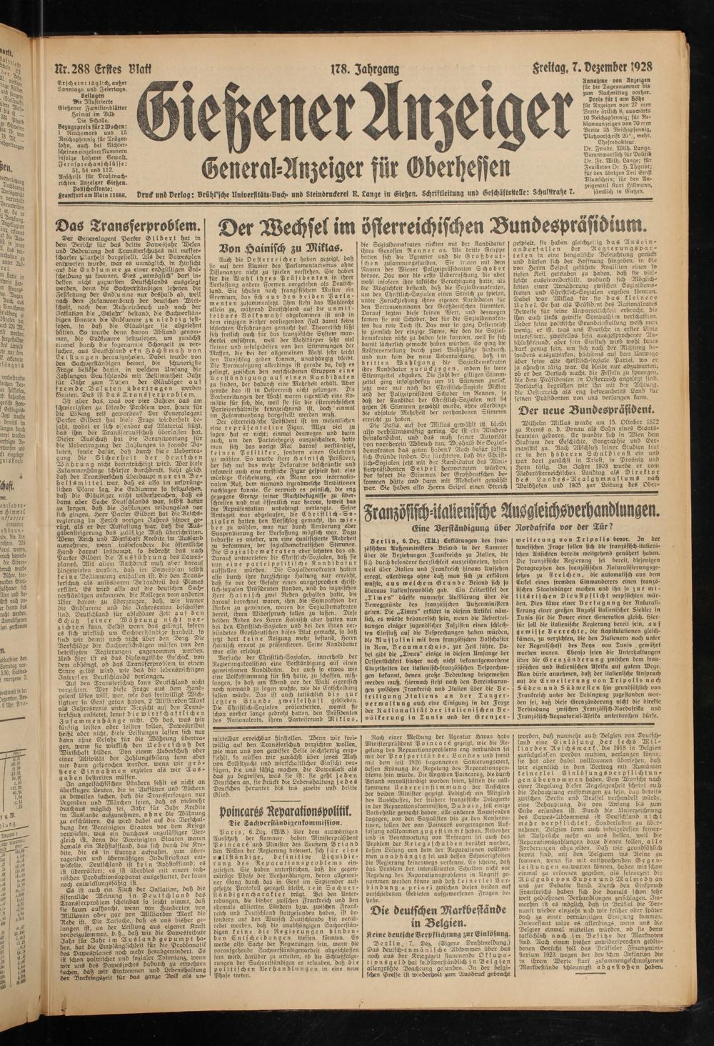 Gießener Anzeiger. 1868-1943