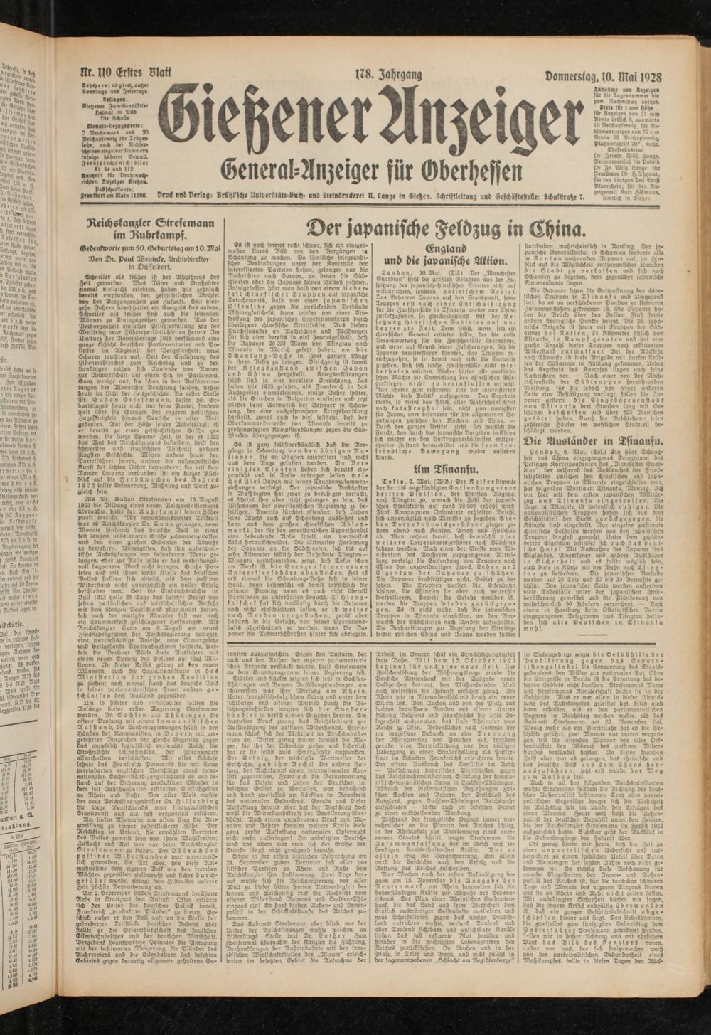 Gießener Anzeiger. 1868-1943
