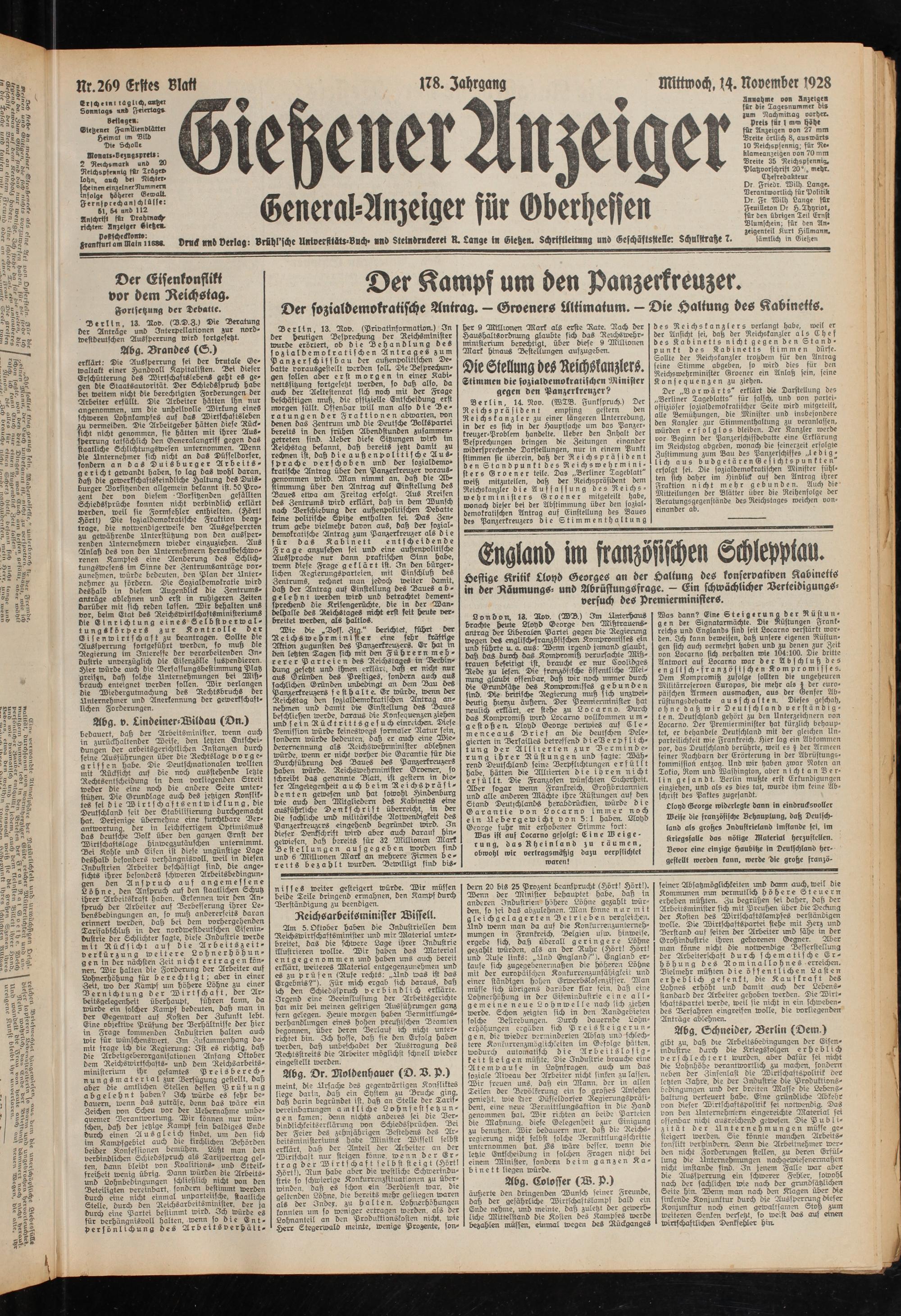 Gießener Anzeiger. 1868-1943