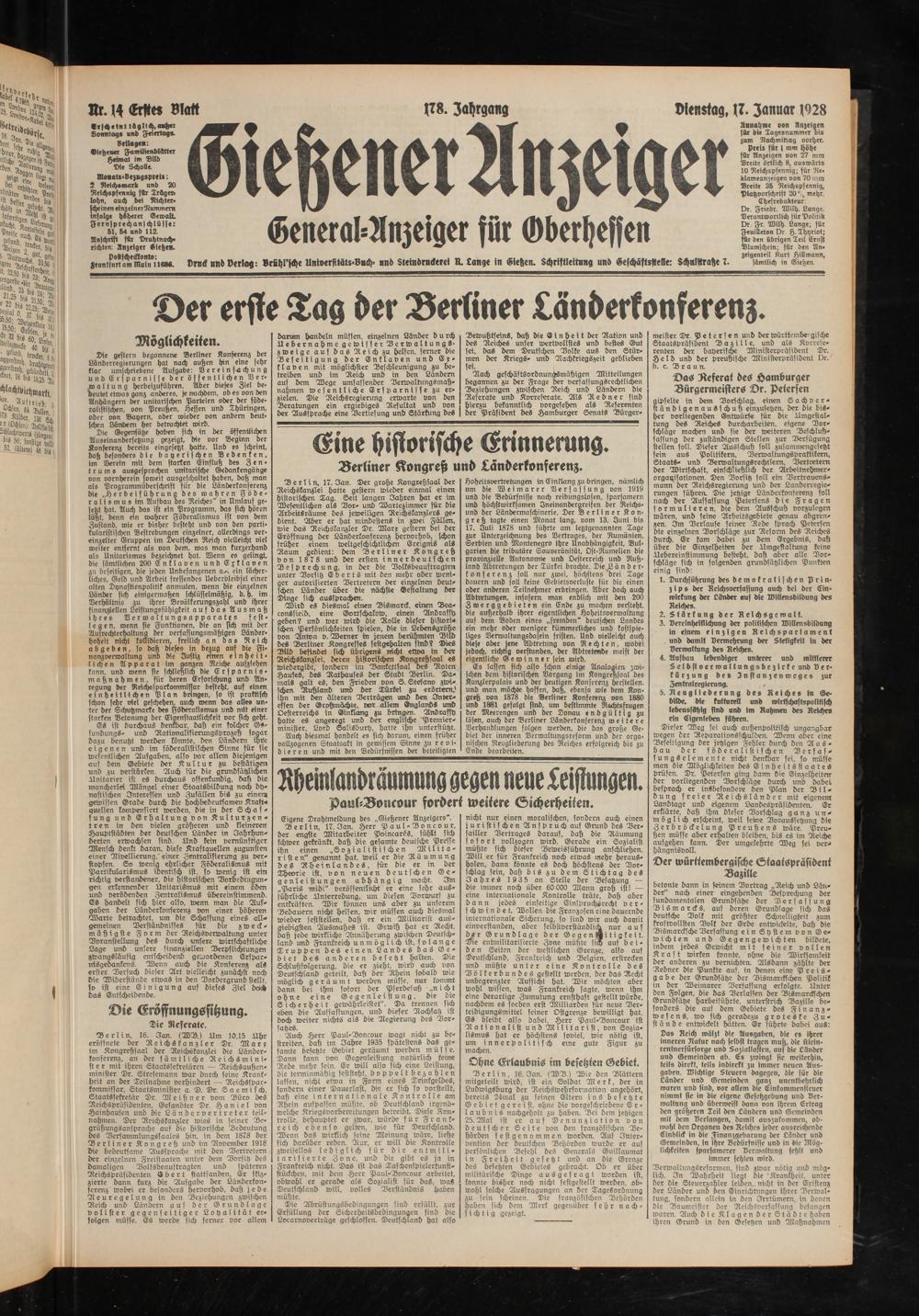 Gießener Anzeiger. 1868-1943