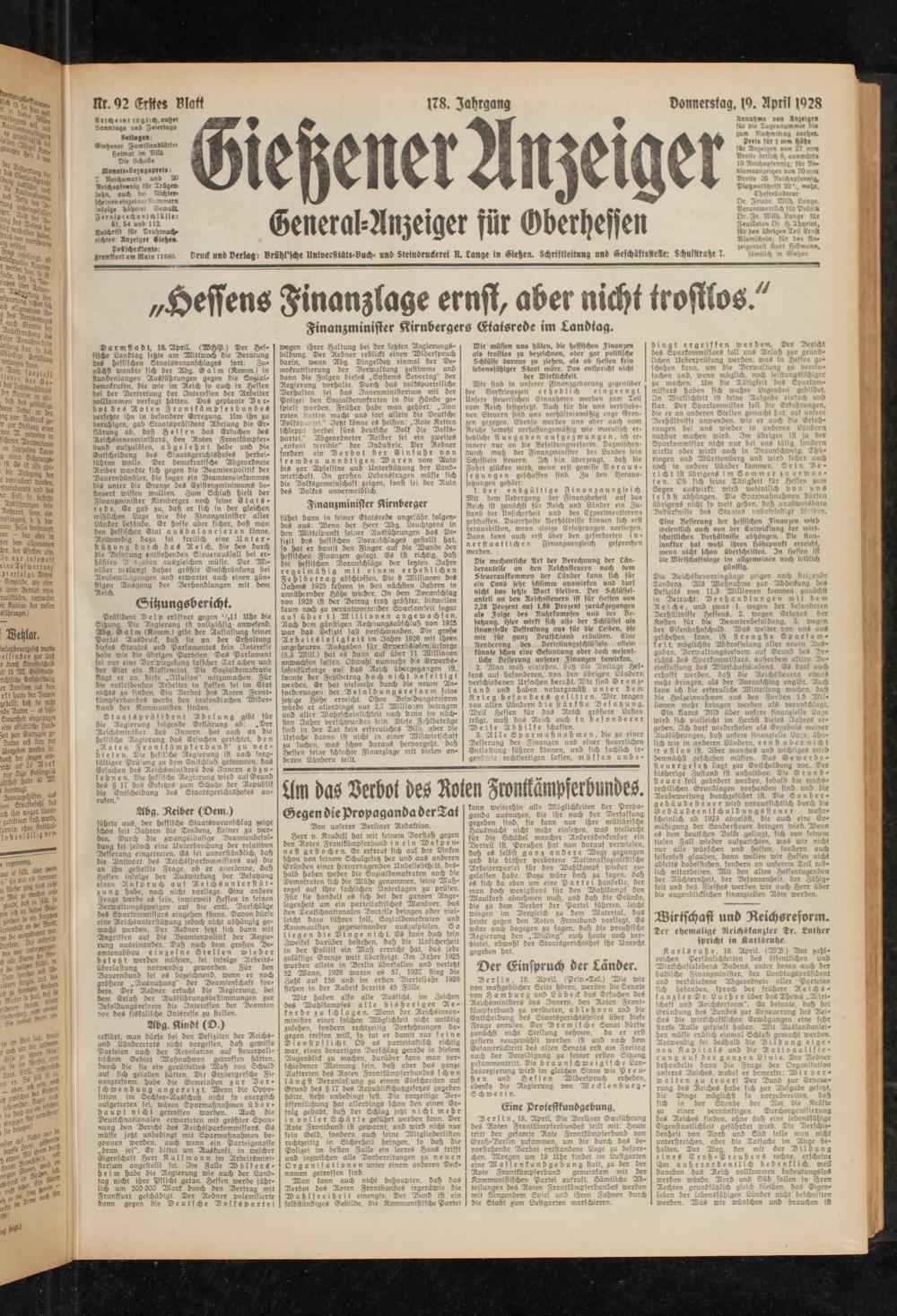 Gießener Anzeiger. 1868-1943