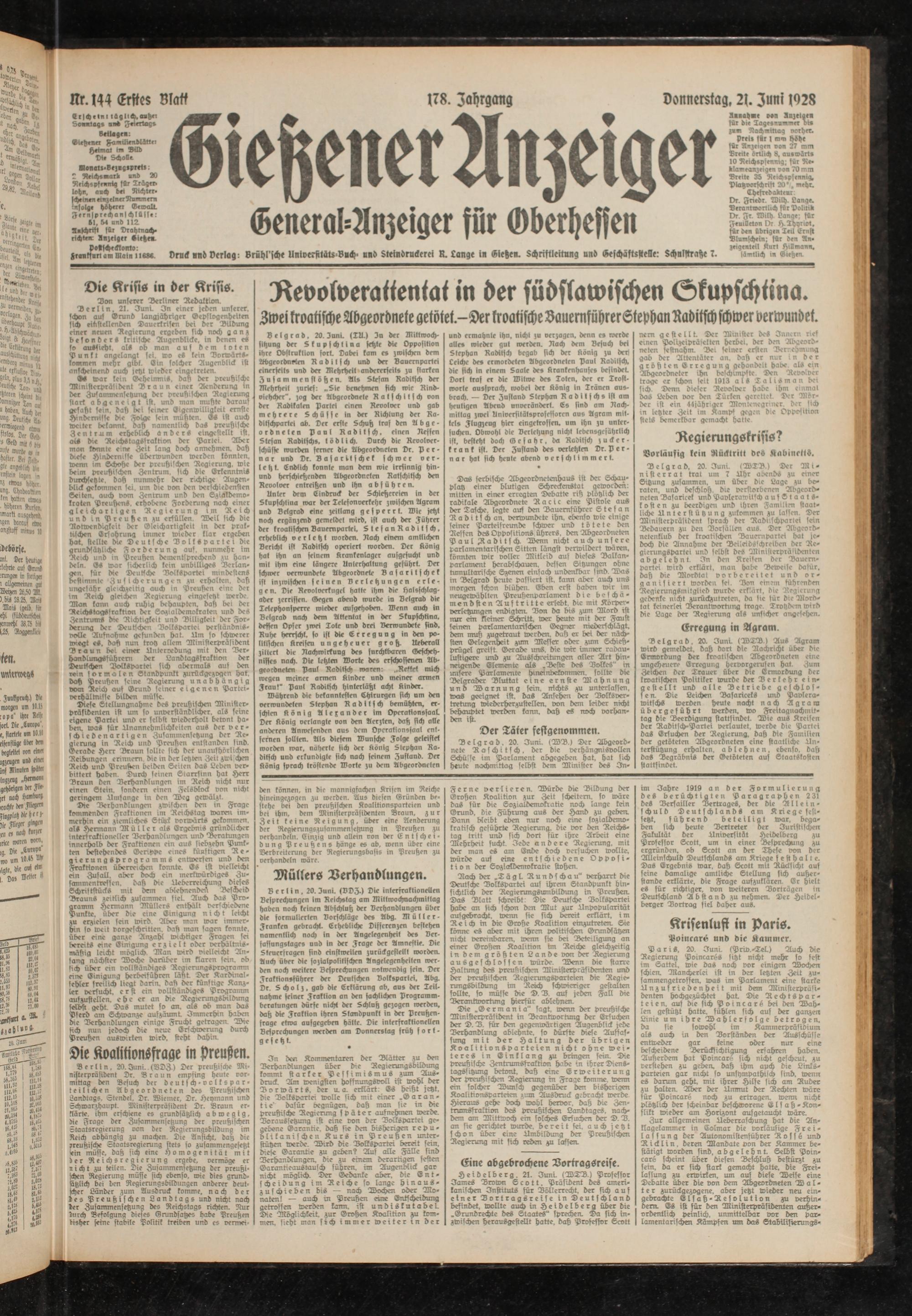Gießener Anzeiger. 1868-1943