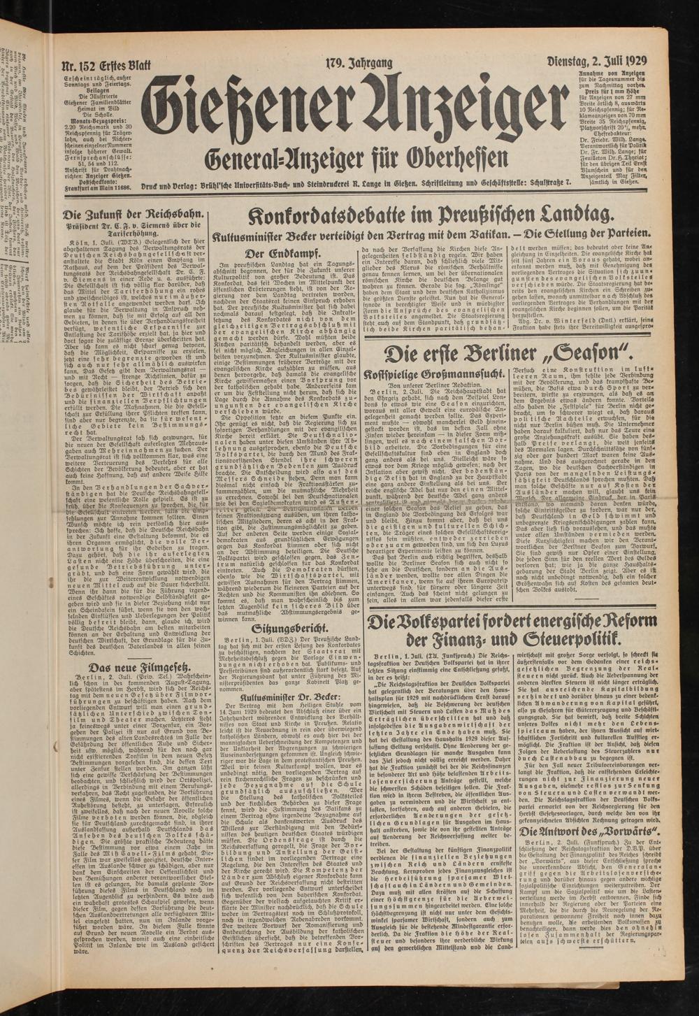 Gießener Anzeiger. 1868-1943