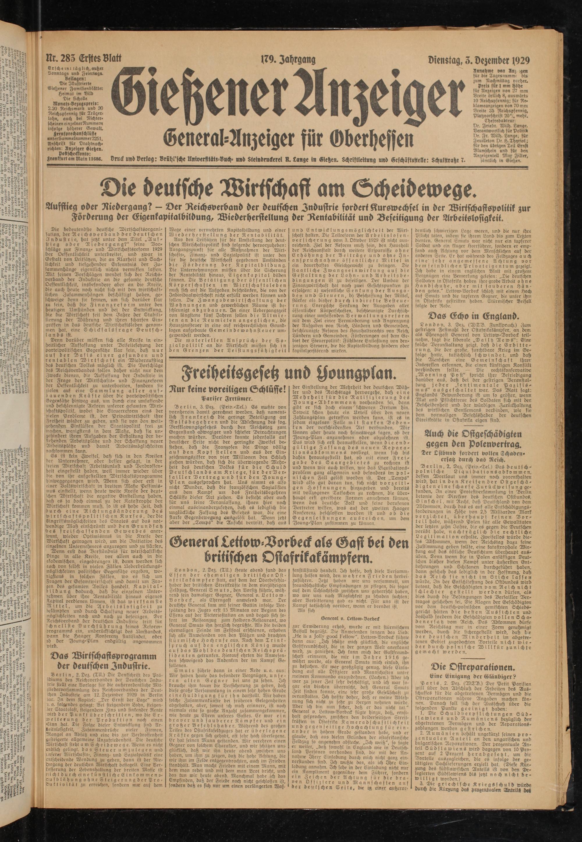 Gießener Anzeiger. 1868-1943