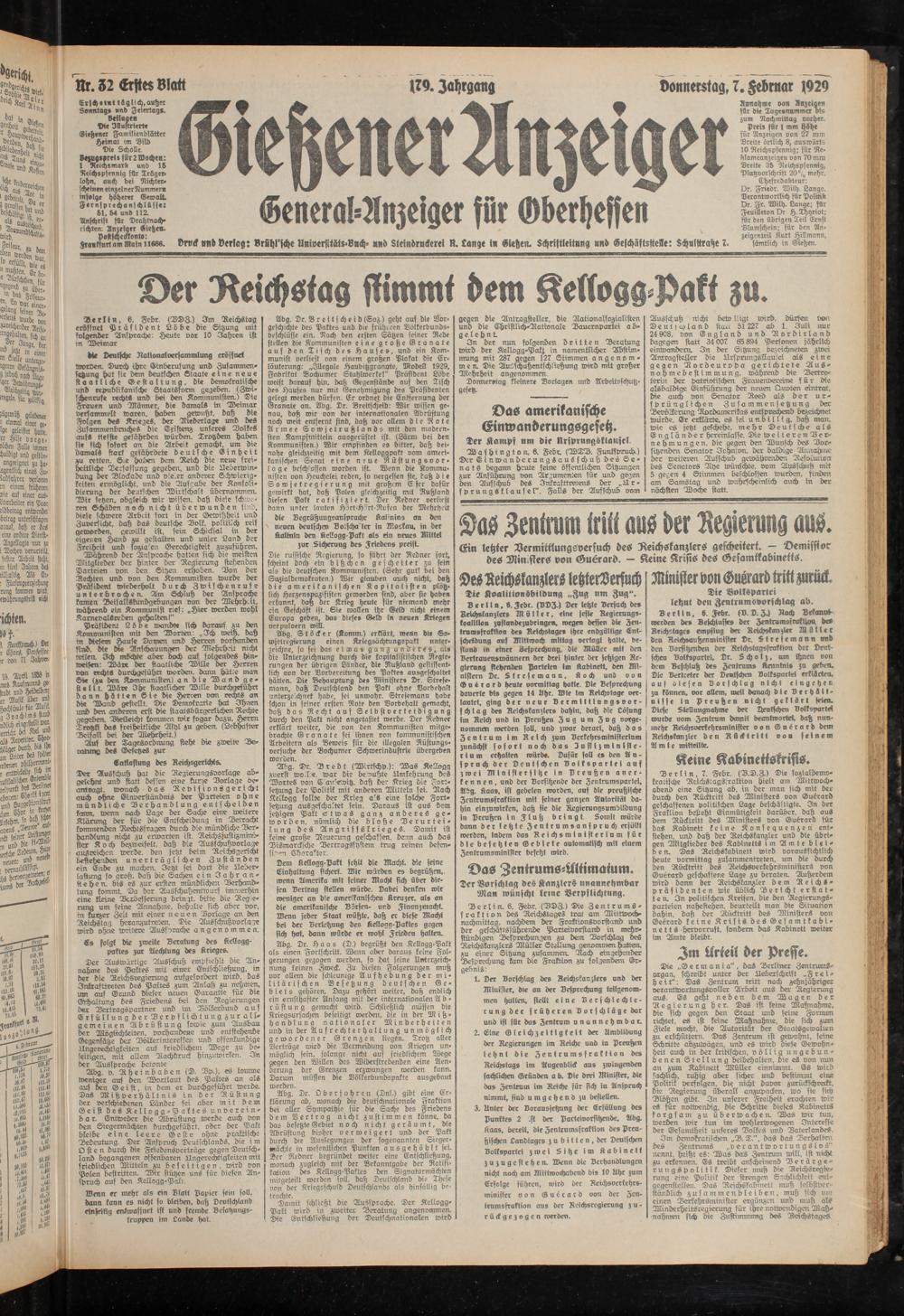 Gießener Anzeiger. 1868-1943