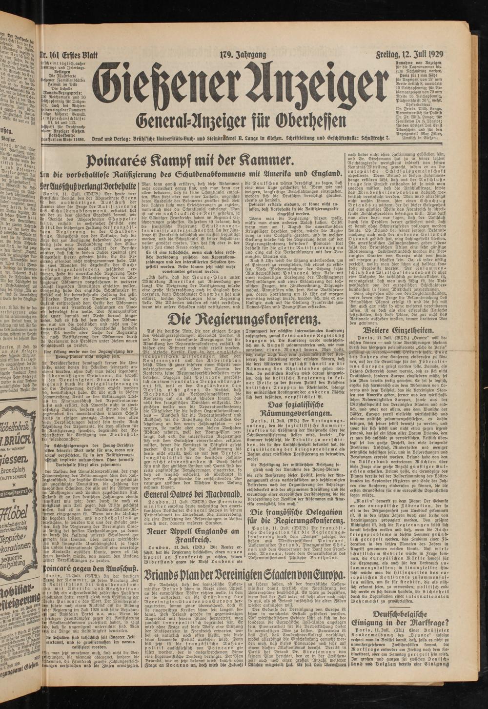 Gießener Anzeiger. 1868-1943