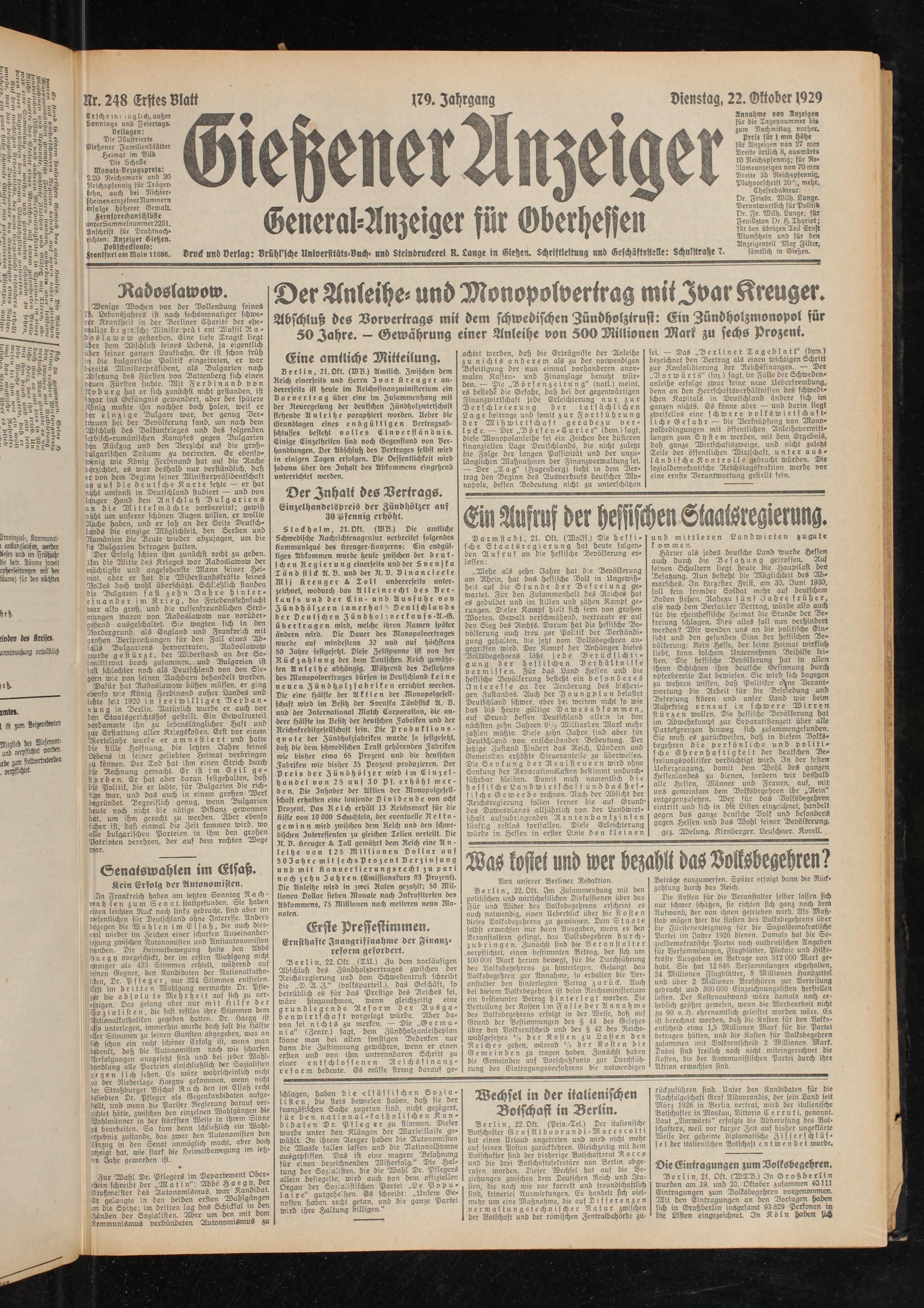 Gießener Anzeiger. 1868-1943