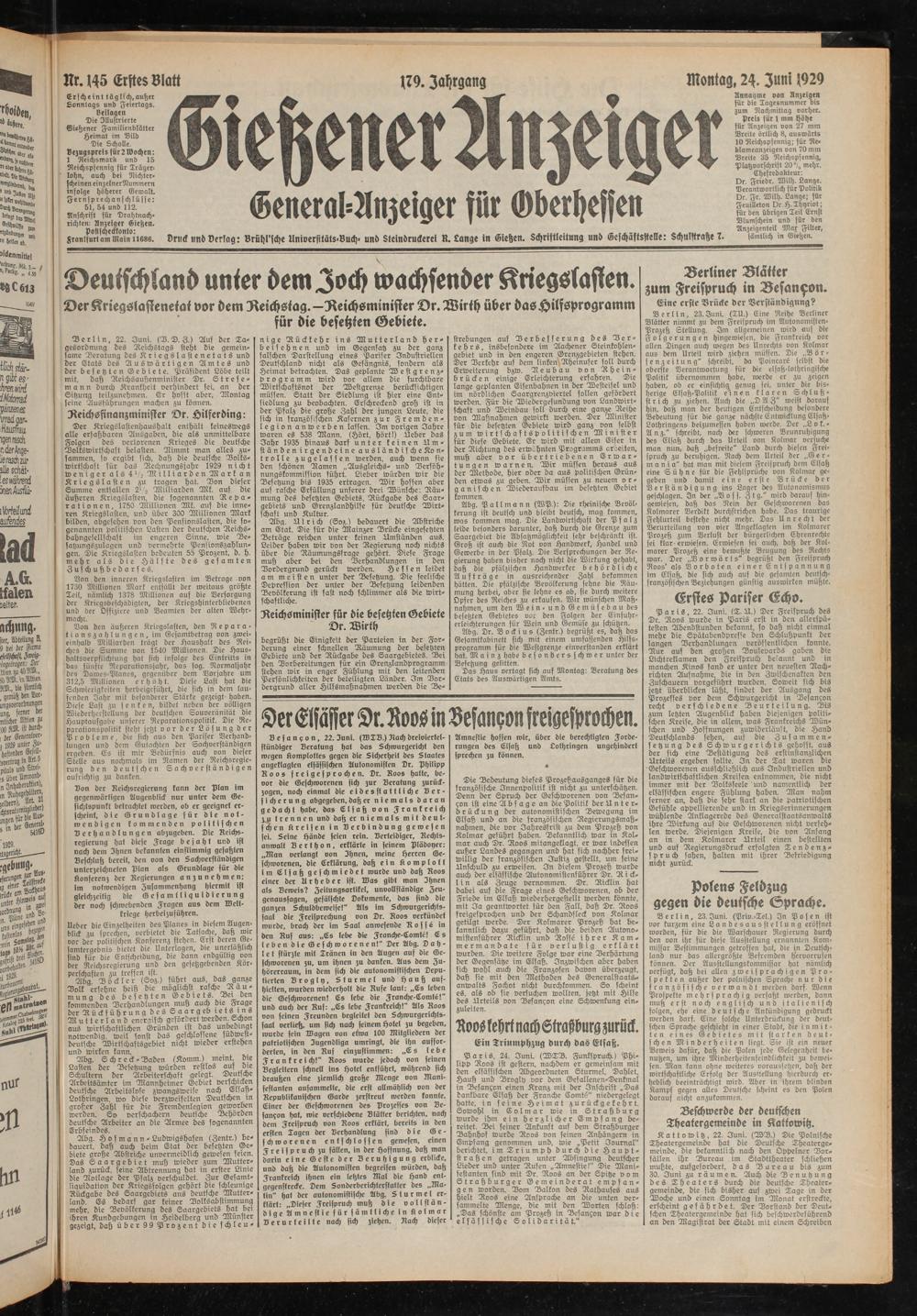 Gießener Anzeiger. 1868-1943