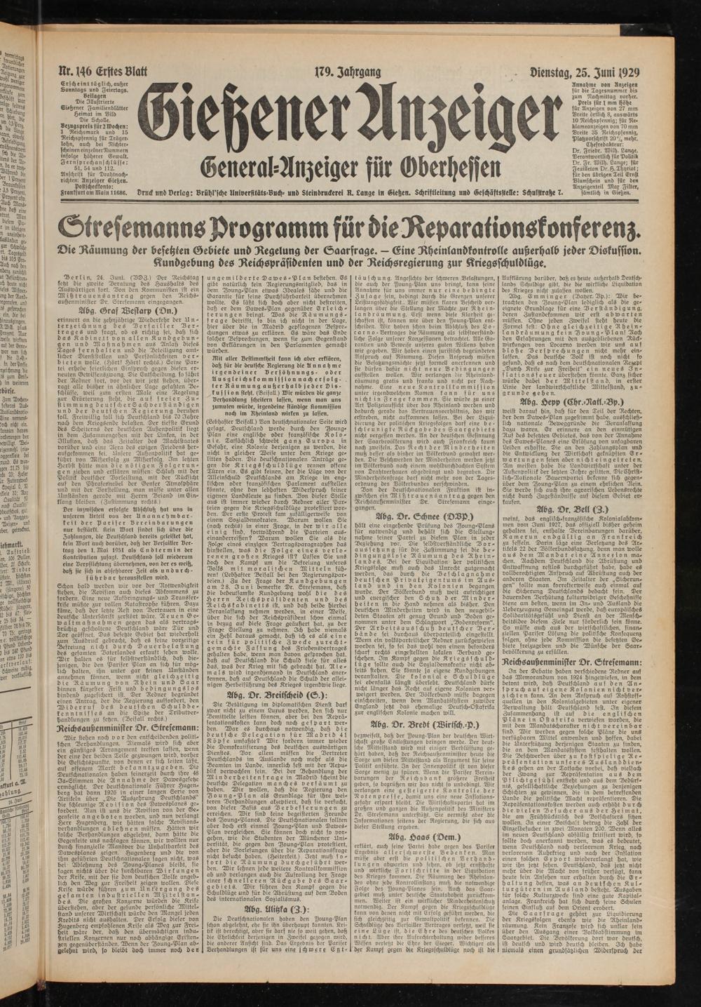Gießener Anzeiger. 1868-1943