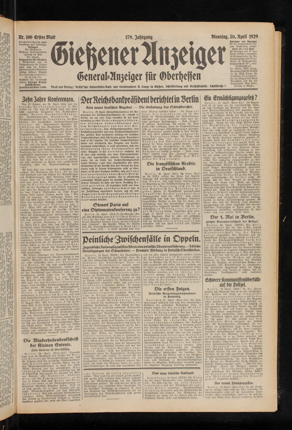 Gießener Anzeiger. 1868-1943