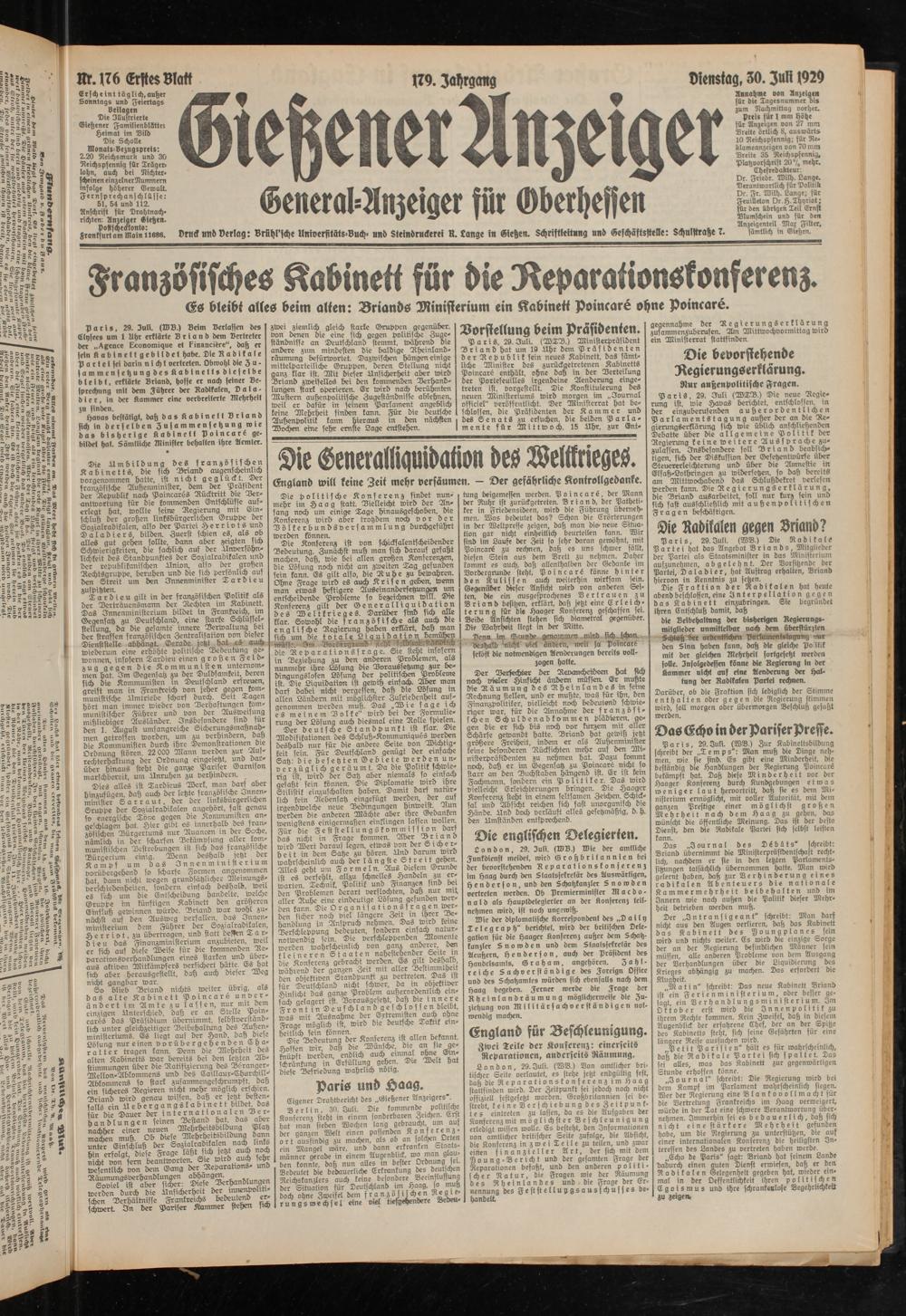 Gießener Anzeiger. 1868-1943