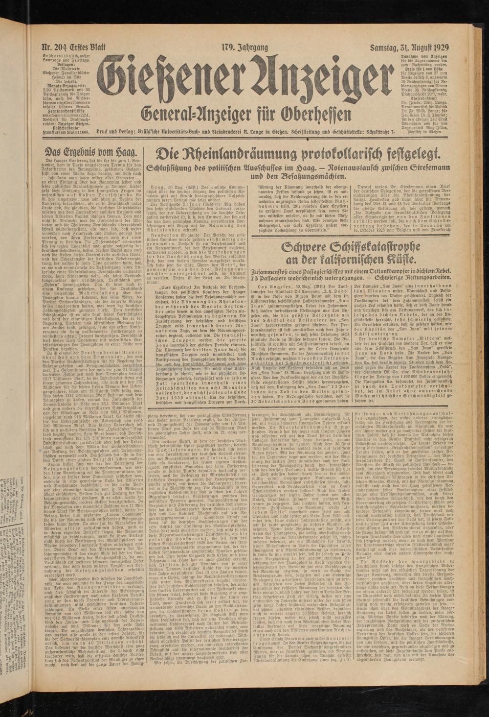 Gießener Anzeiger. 1868-1943