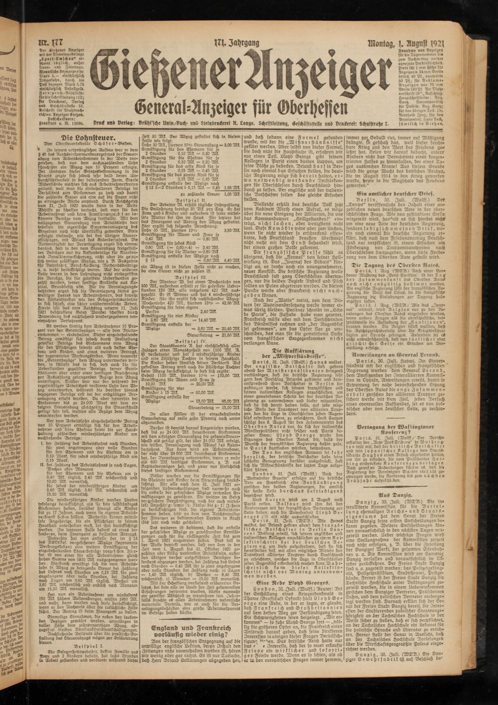 Gießener Anzeiger. 1868-1943