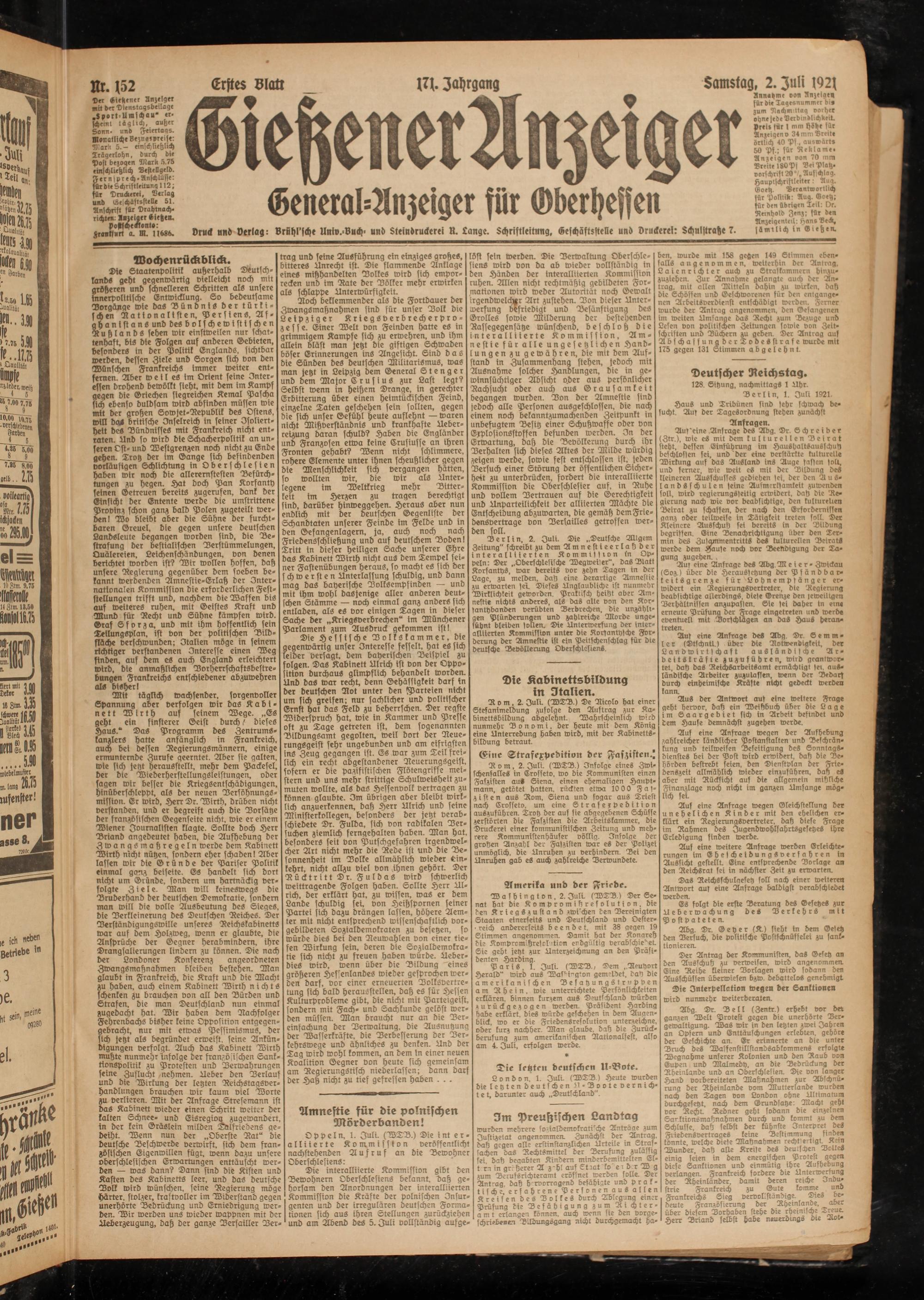 Gießener Anzeiger. 1868-1943