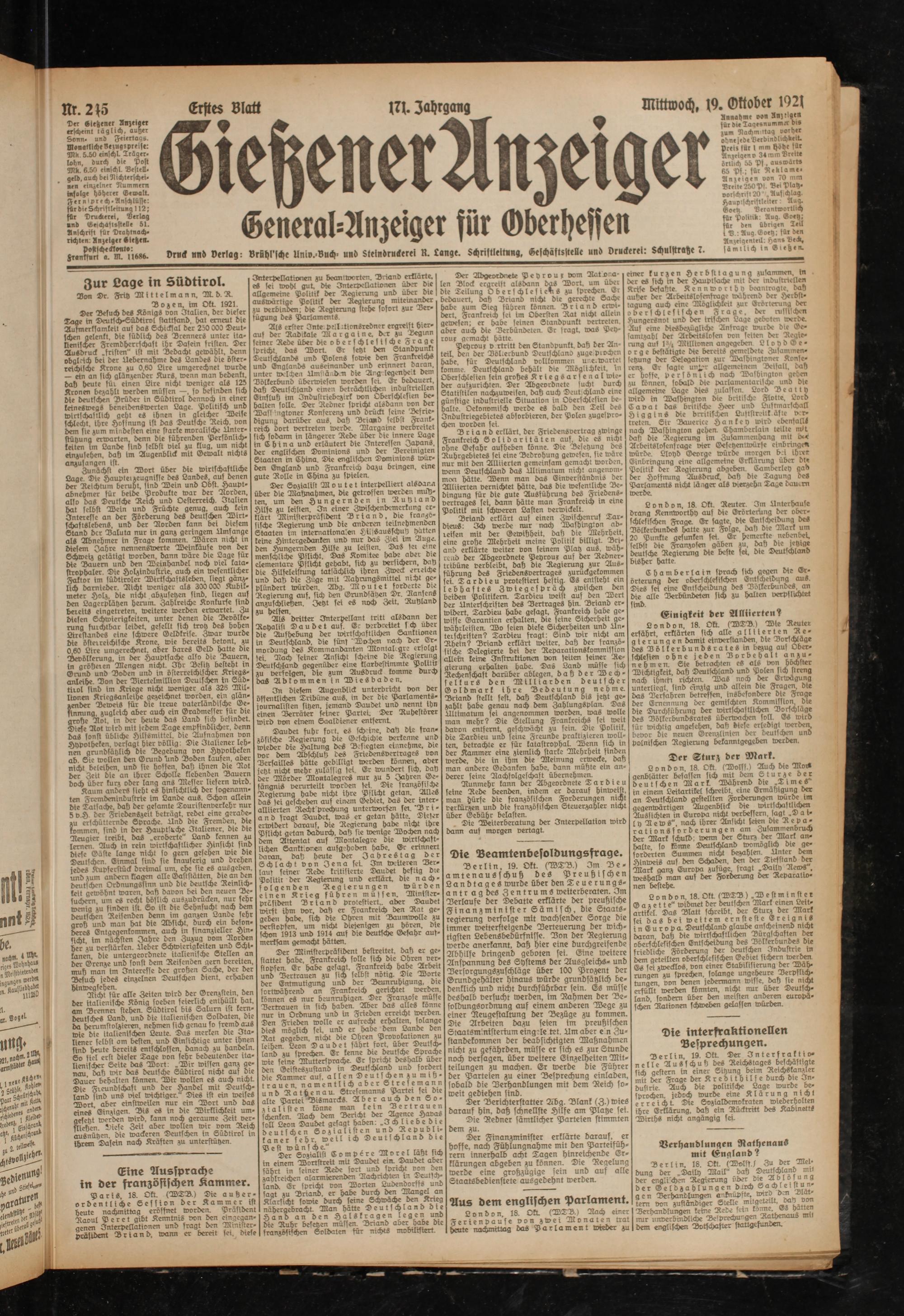 Gießener Anzeiger. 1868-1943