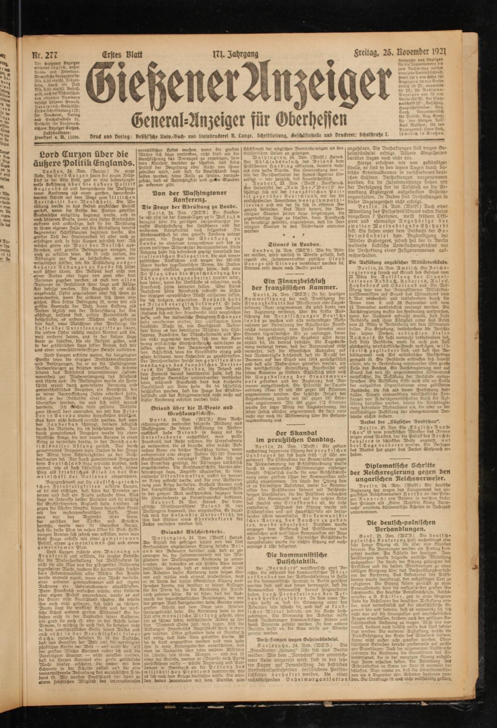 Gießener Anzeiger. 1868-1943