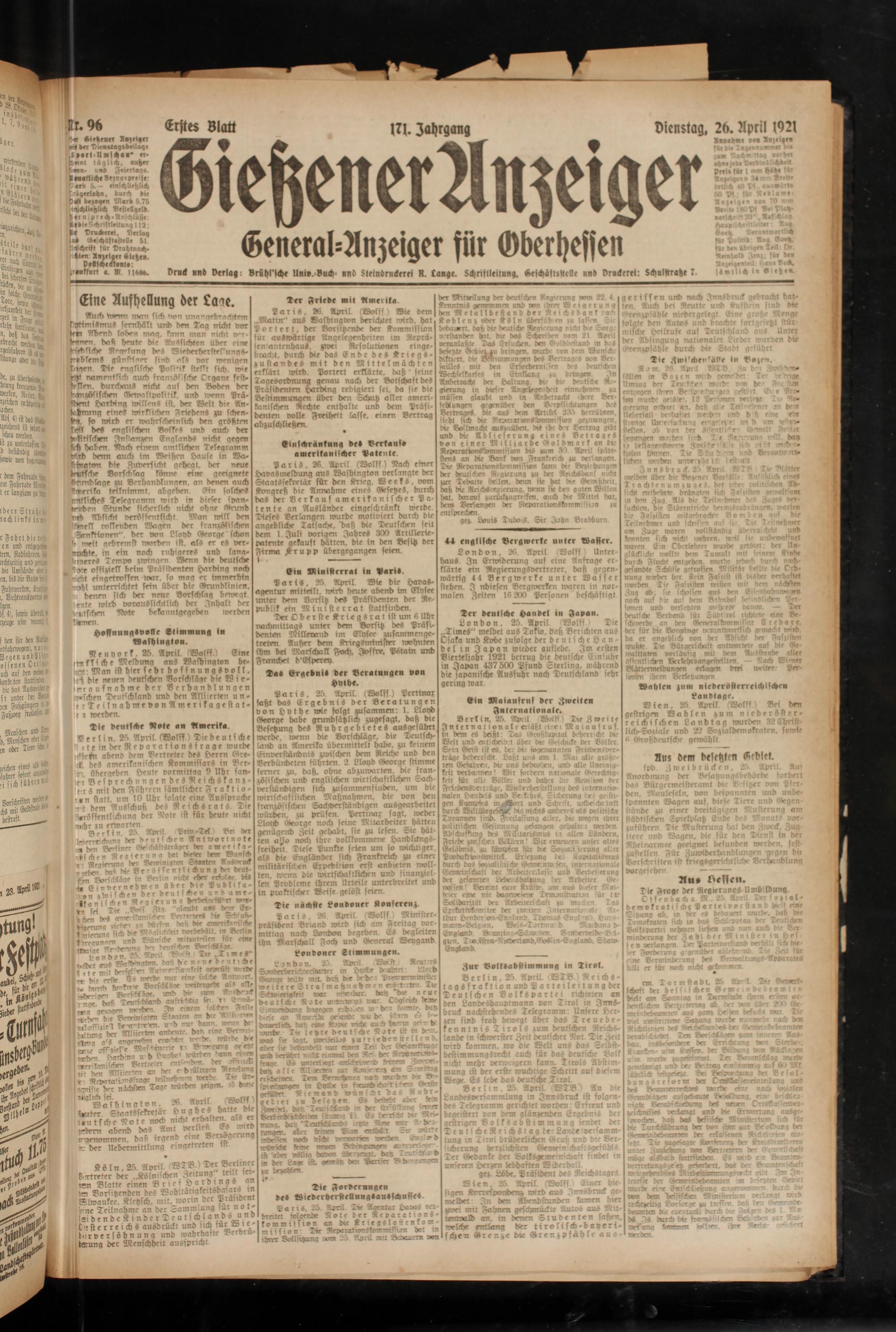 Gießener Anzeiger. 1868-1943