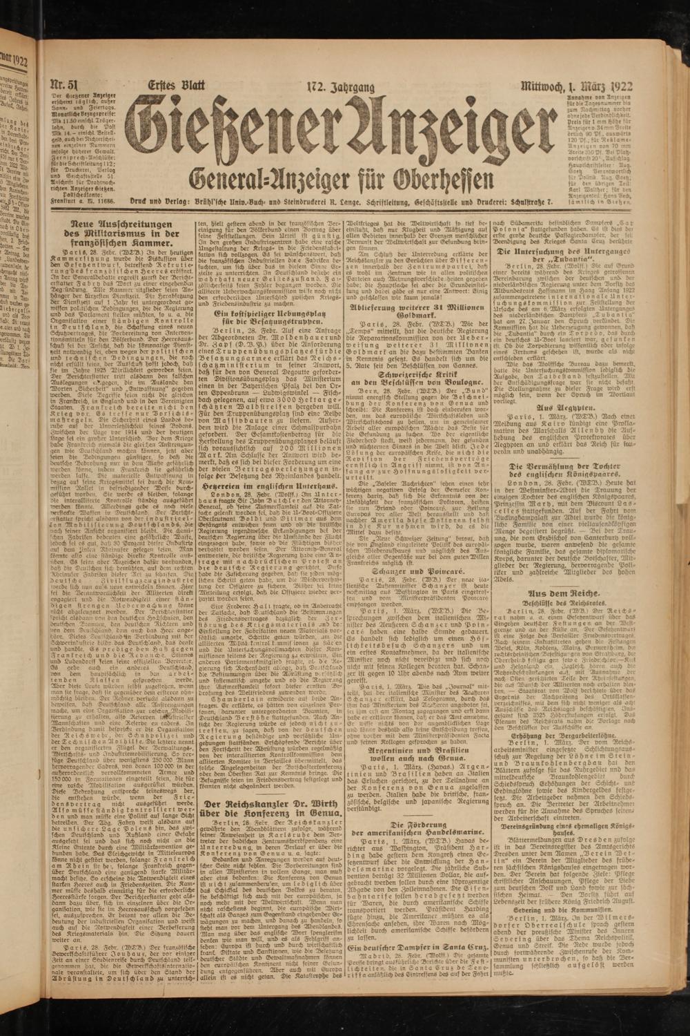 Gießener Anzeiger. 1868-1943