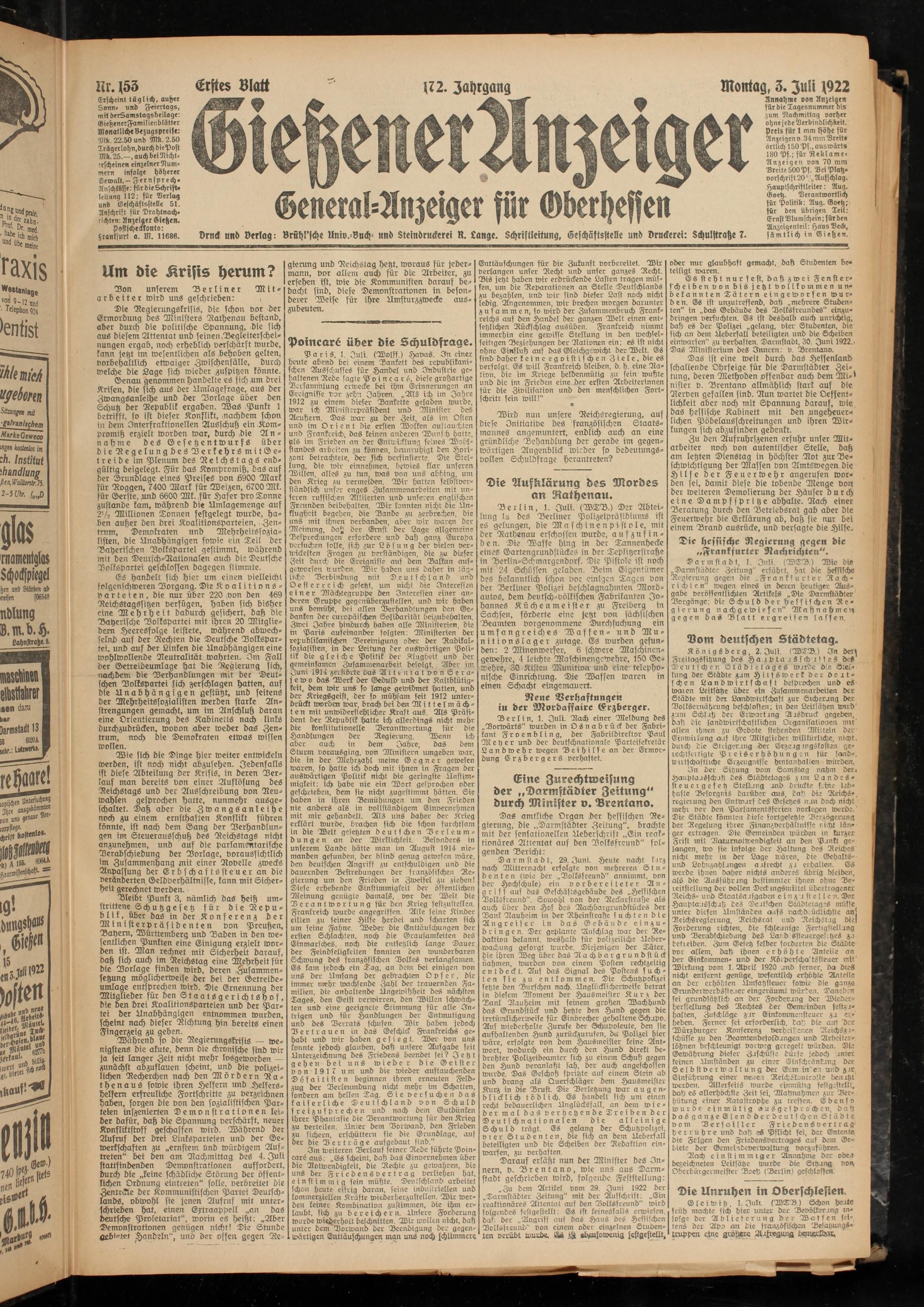 Gießener Anzeiger. 1868-1943