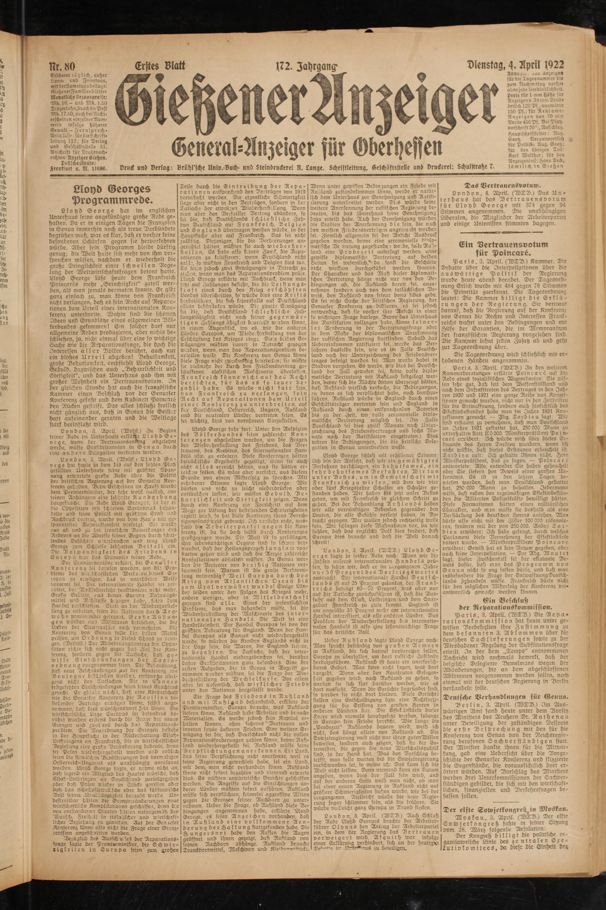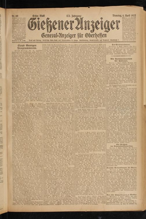 Gießener Anzeiger. 1868-1943
